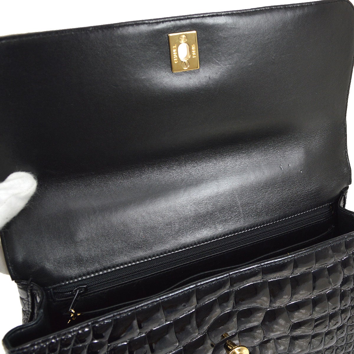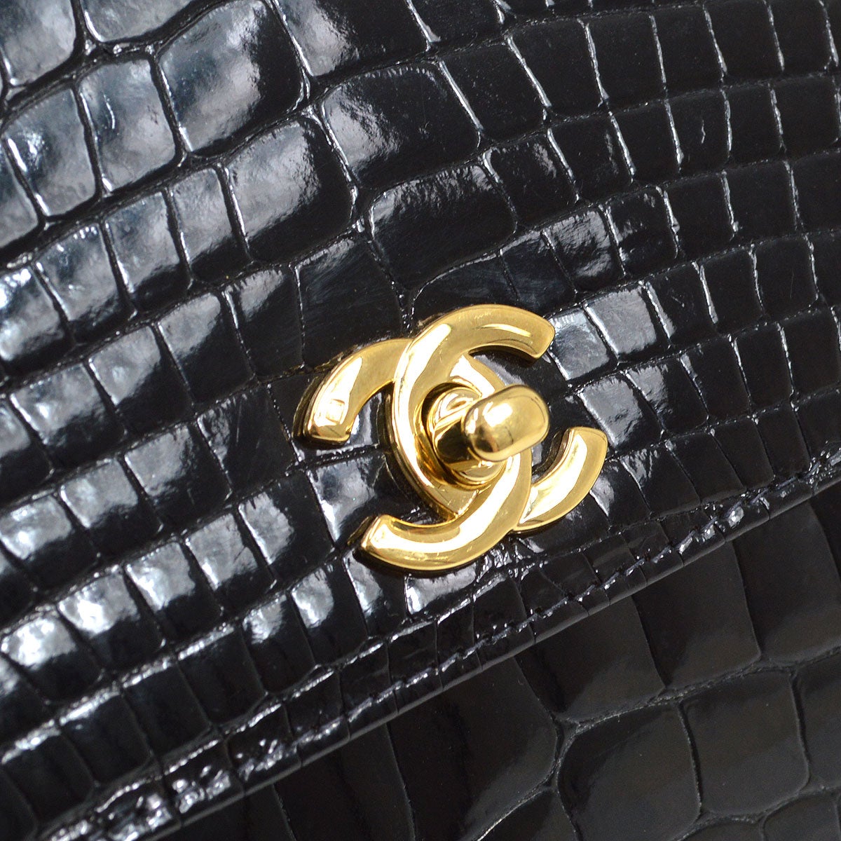 CHANEL * 1997-1999 Black Crocodile Kelly 30