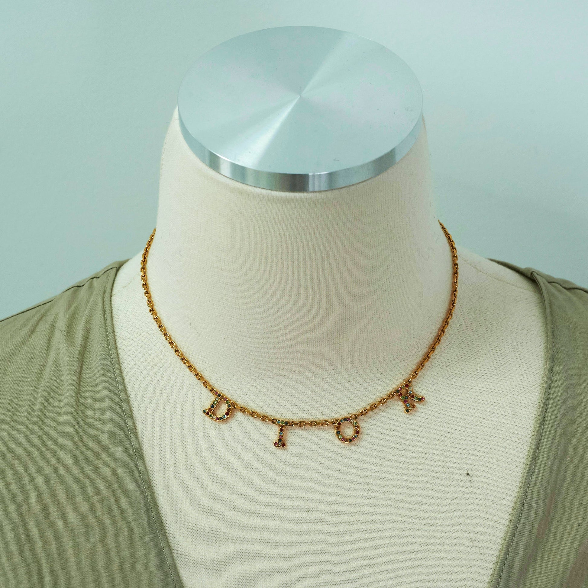 Christian Dior Multicolour Rhinestone Logo Necklace Costume Jewellery