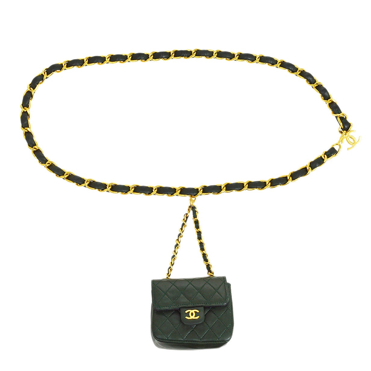 CHANEL 1990s Green Lambskin Belt Bag Micro