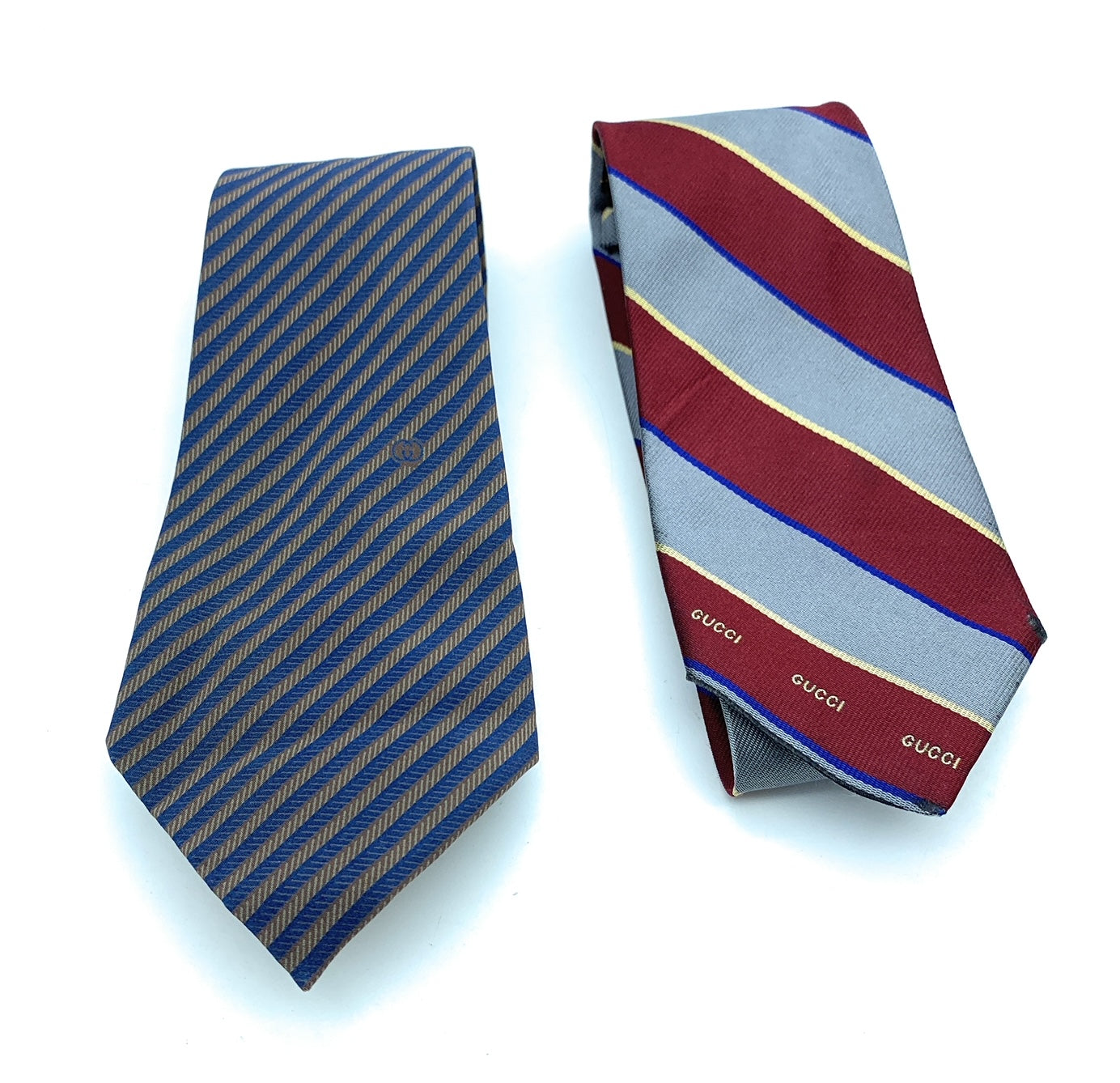 We are offering these 2 vintage silk twill Striped neckties made by GUCCI. These Ties are in good conditon. One of the striped ties does have some blemishes. (SEE PIX)