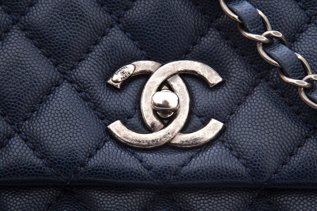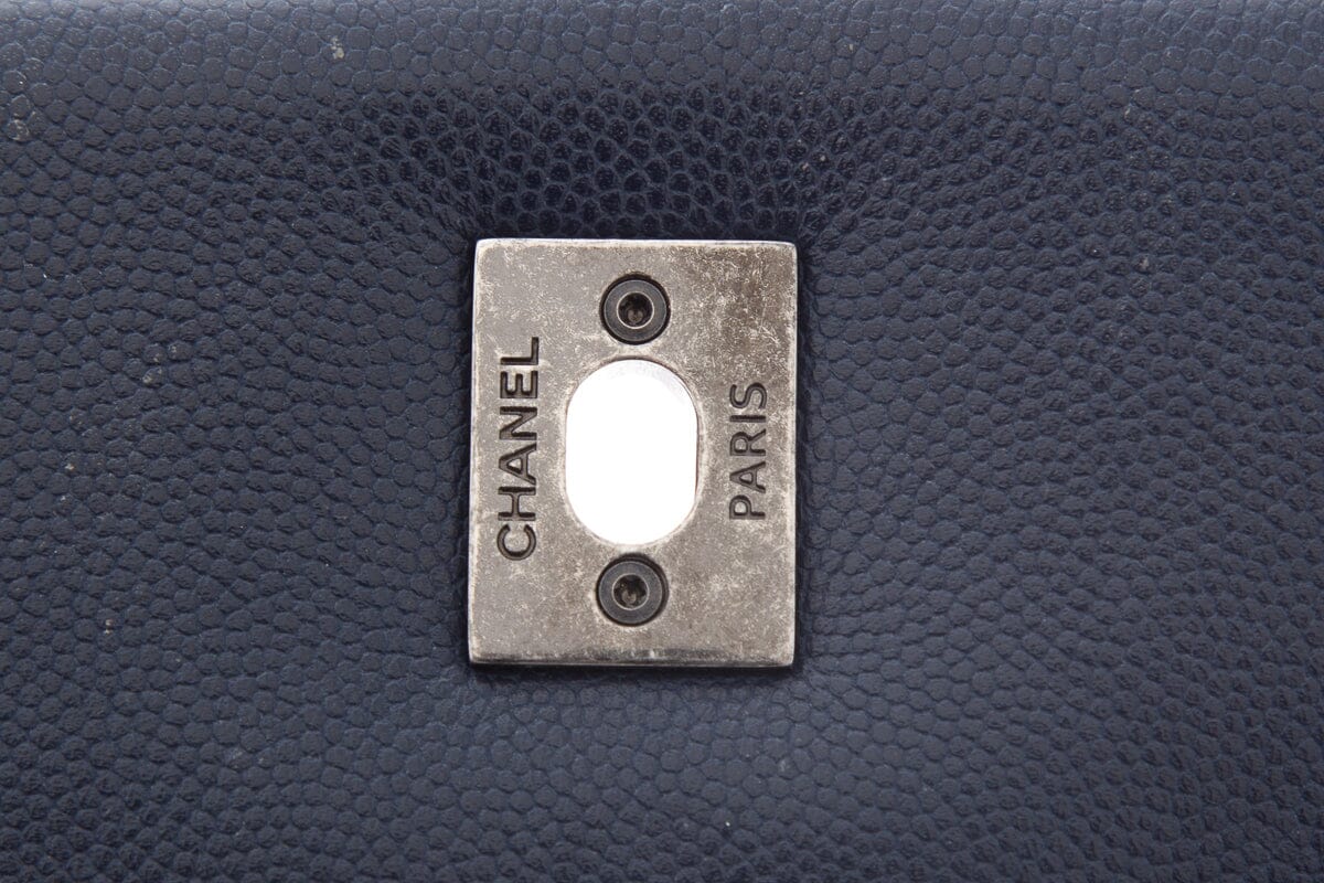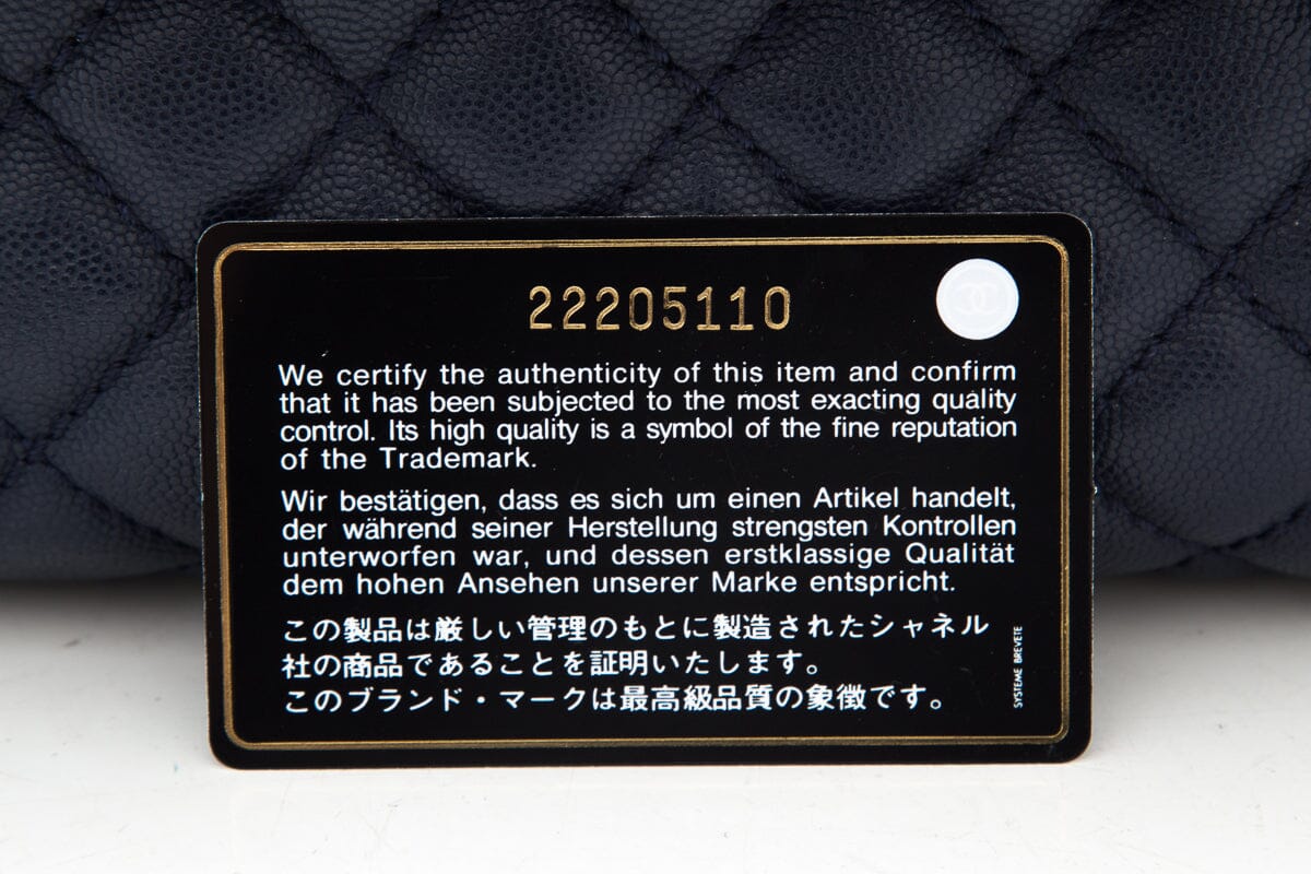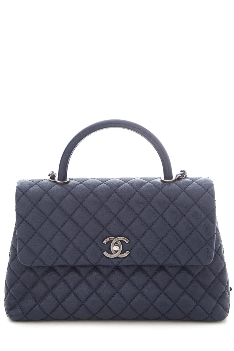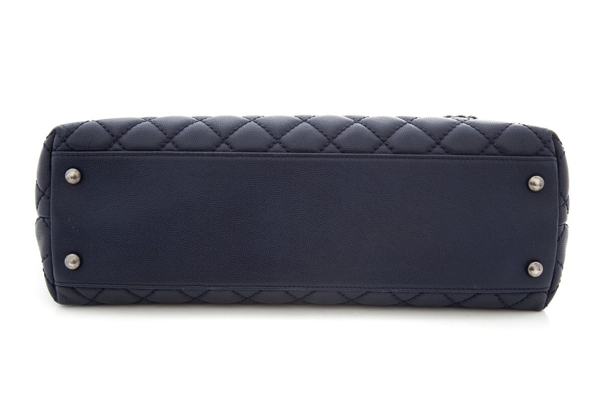 2016 Chanel Coco Top-Handle Navy Quilted Caviar Leather Handbag