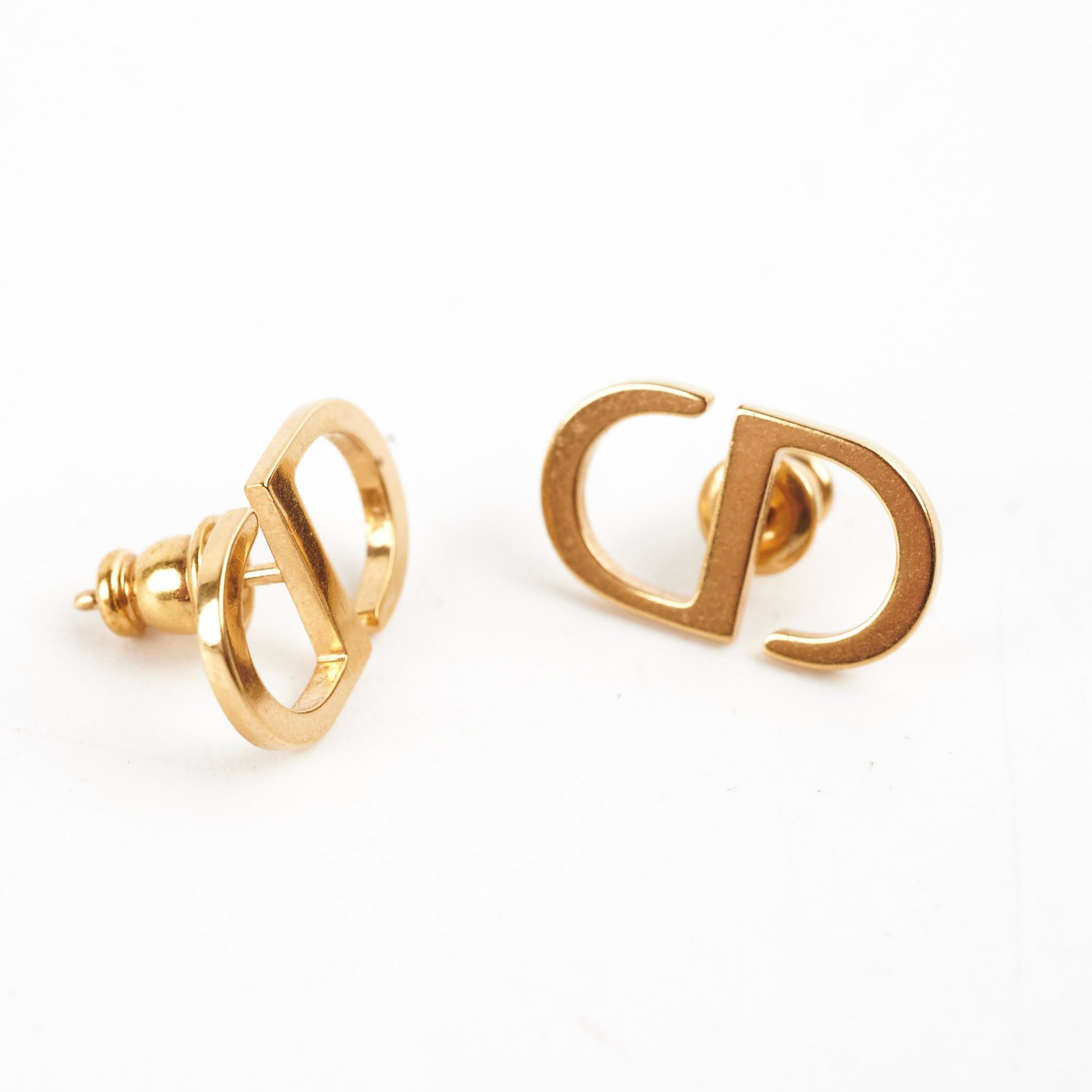 Christian Dior CD Logo Gold Earrings Costume Jewellery