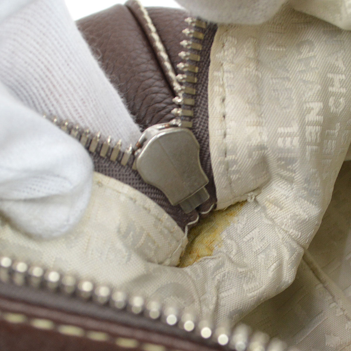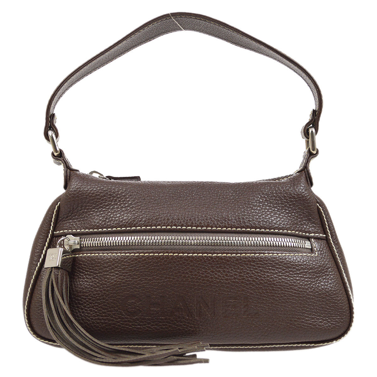 CHANEL 2003-2004 Brown Caviar Embossed Logo Shoulder Bag