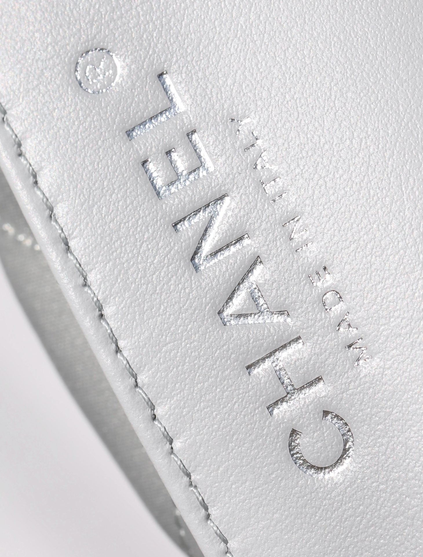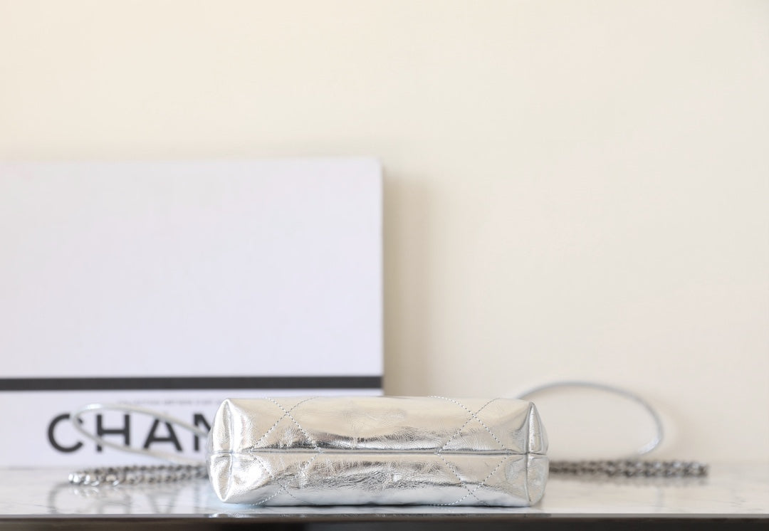 CHANEL 25C Hobo 22 Bag 19cm Silver Metalic Lambskin