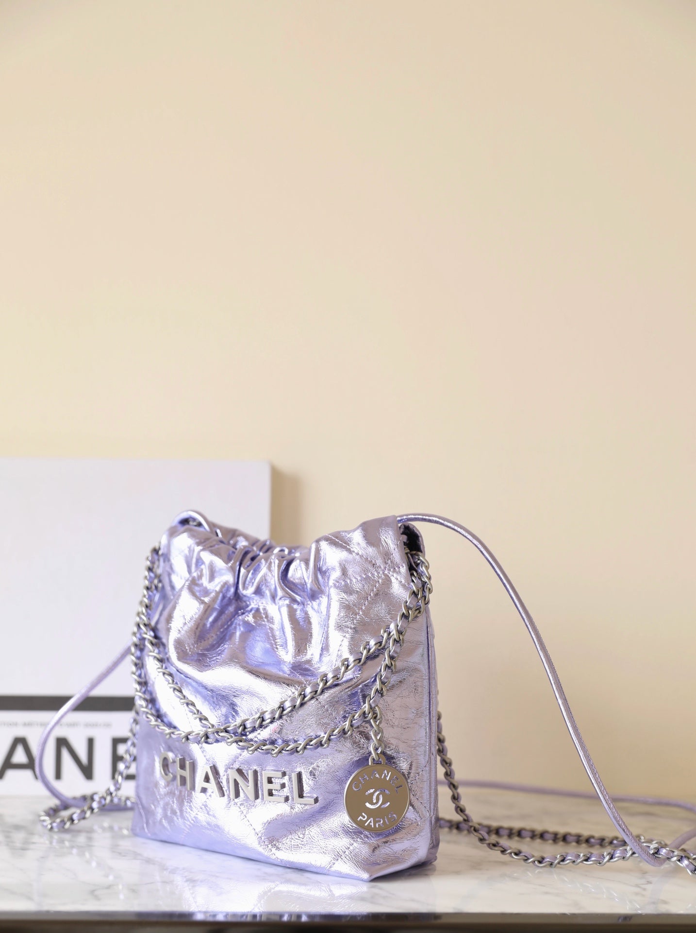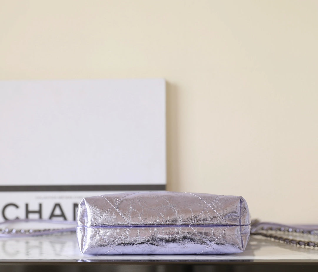 CHANEL 25C Hobo 22 Bag 19cm Violet Metalic Lambskin