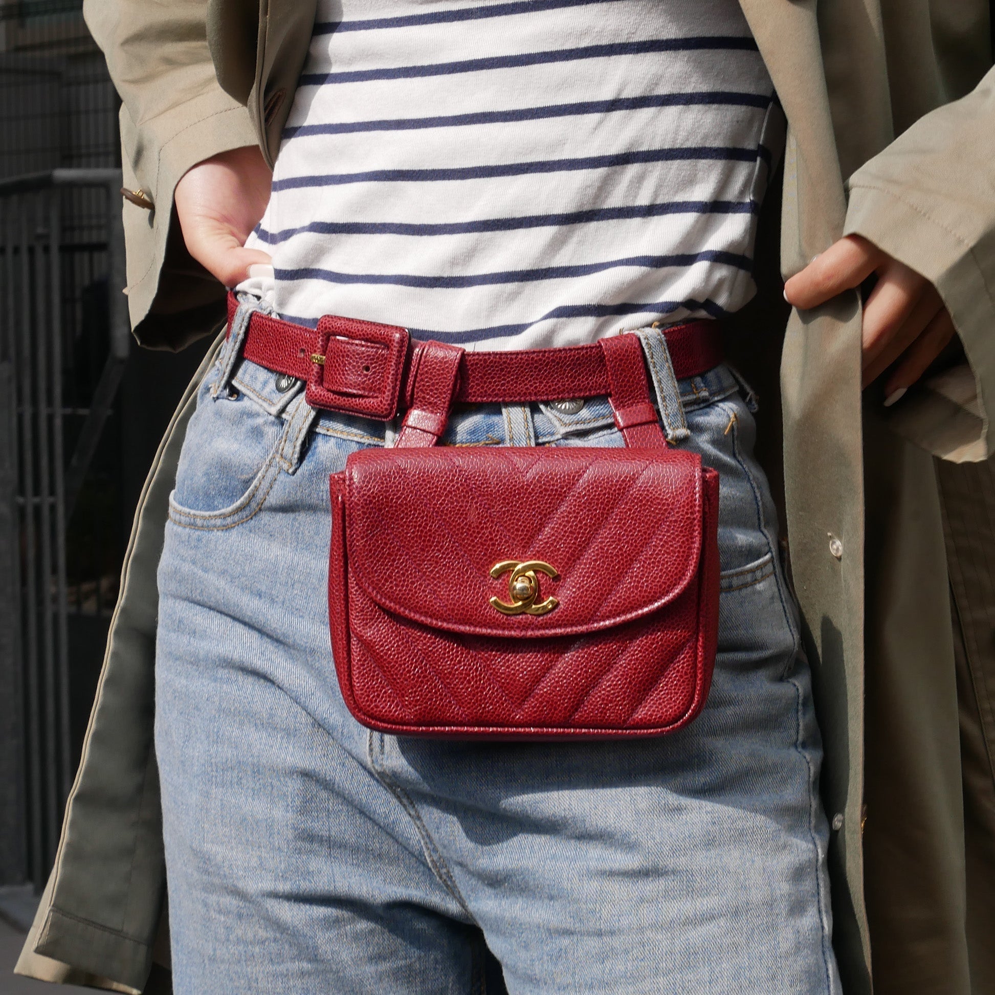 CHANEL V Stitch Waist Bum Bag Bordeaux Caviar skin