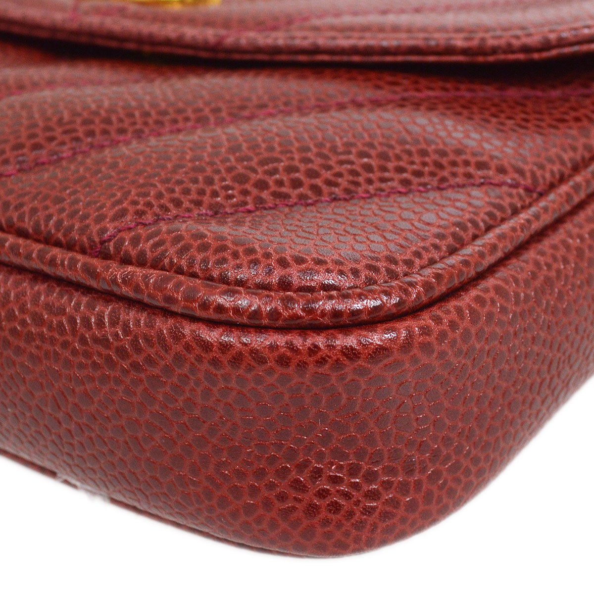 CHANEL 2001-2003 Bordeaux Caviar Chevron Belt Bag #70