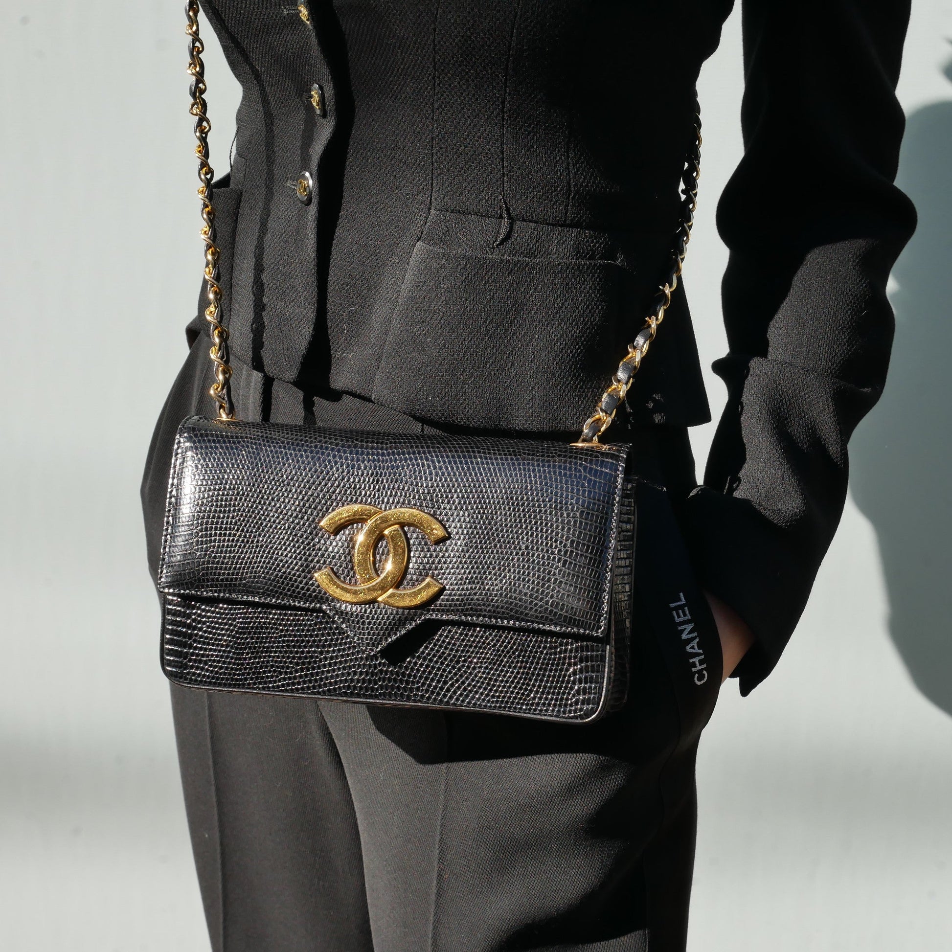 CHANEL 1986-1988 Black Lizard Pointed Flap