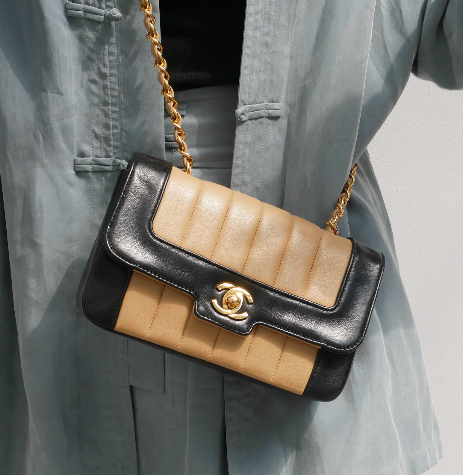 CHANEL Mademoiselle Single Chain Shoulder Bag Bicolor Lambskin