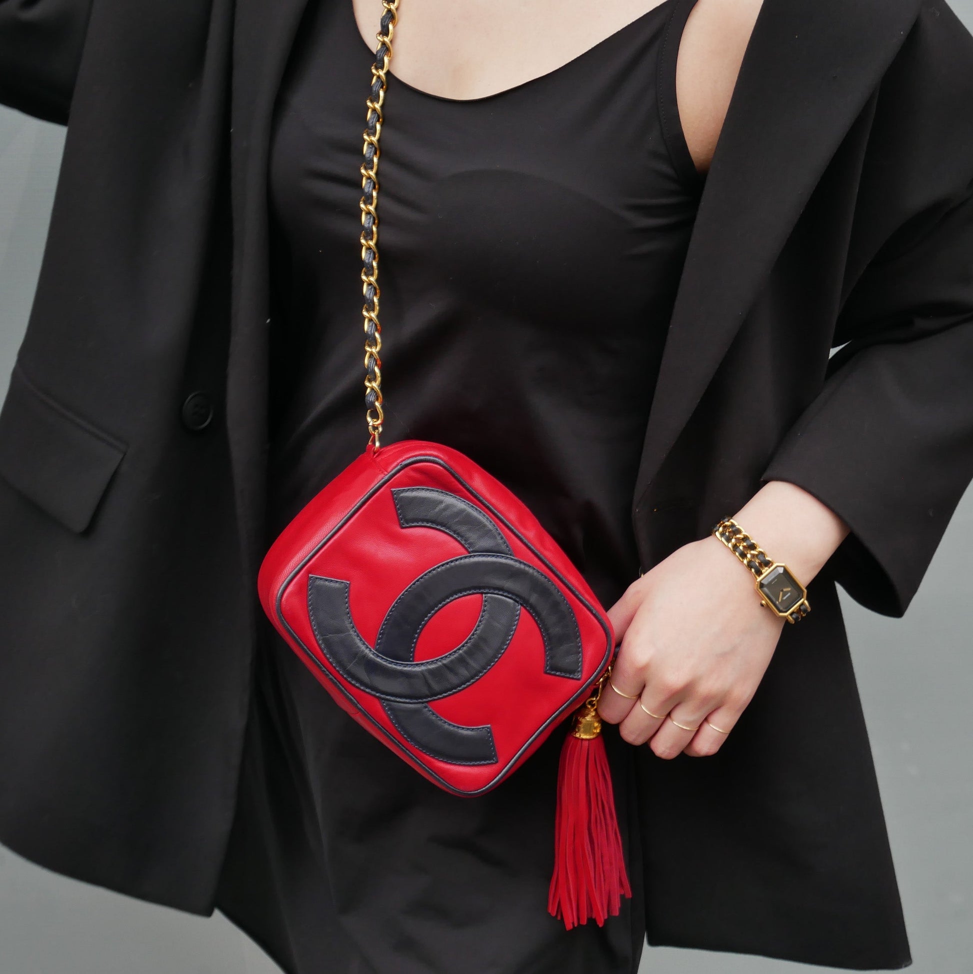 CHANEL 1986-1988 Red Navy Lambskin Camera Bag