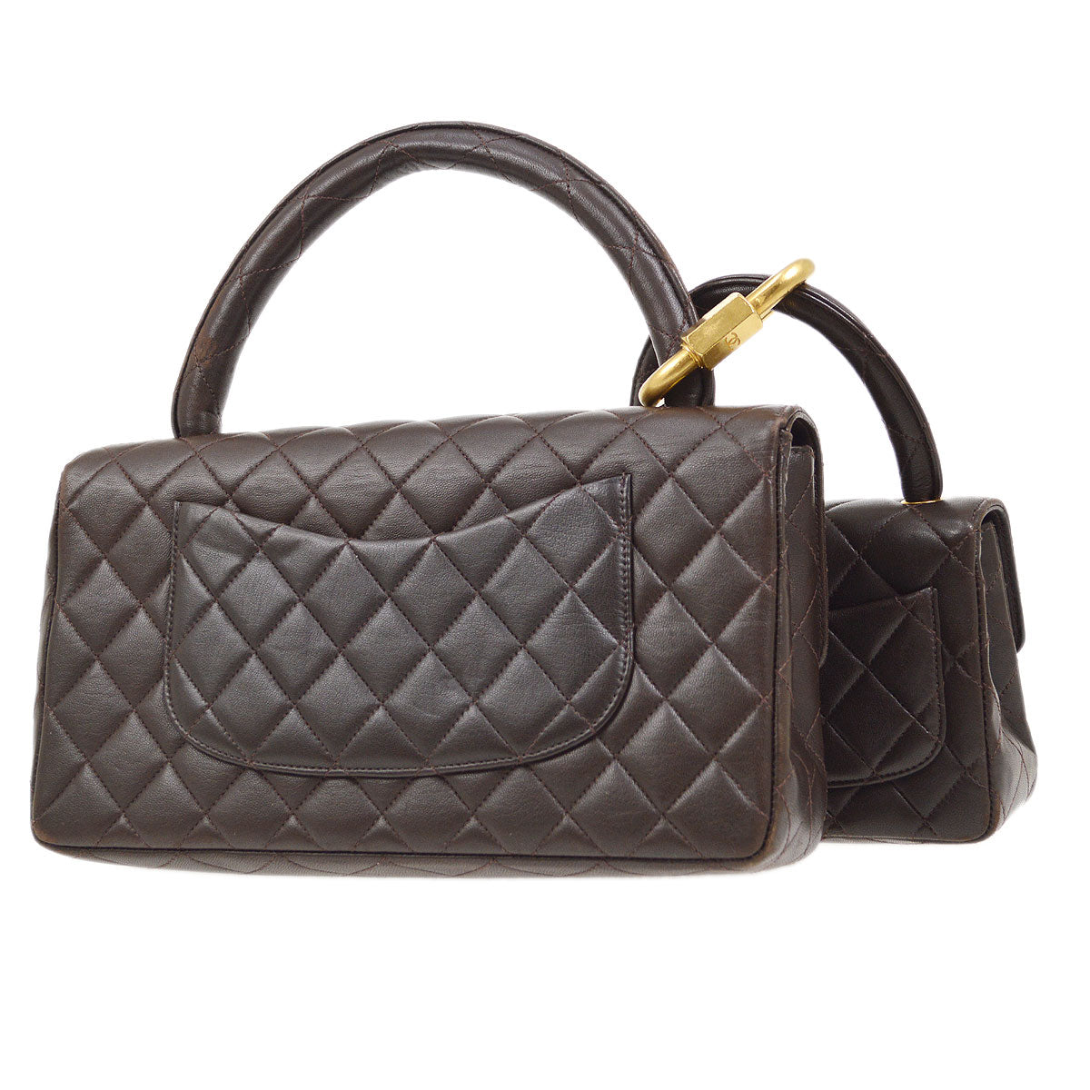 CHANEL 1991-1994 2 in 1 Hand Bag Set Brown Lambskin