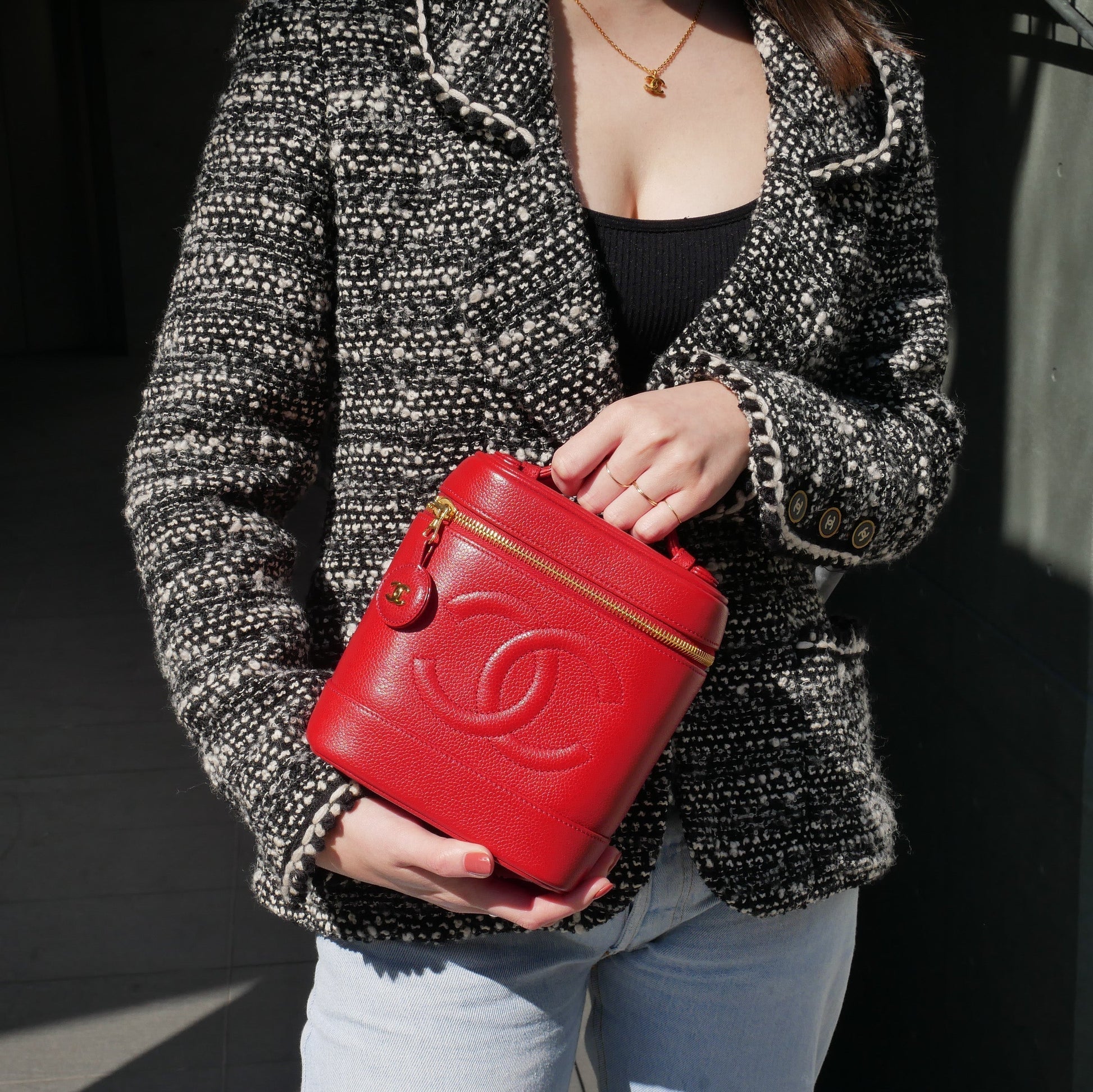 CHANEL 1996-1997 Red Caviar Timeless Vanity Handbag