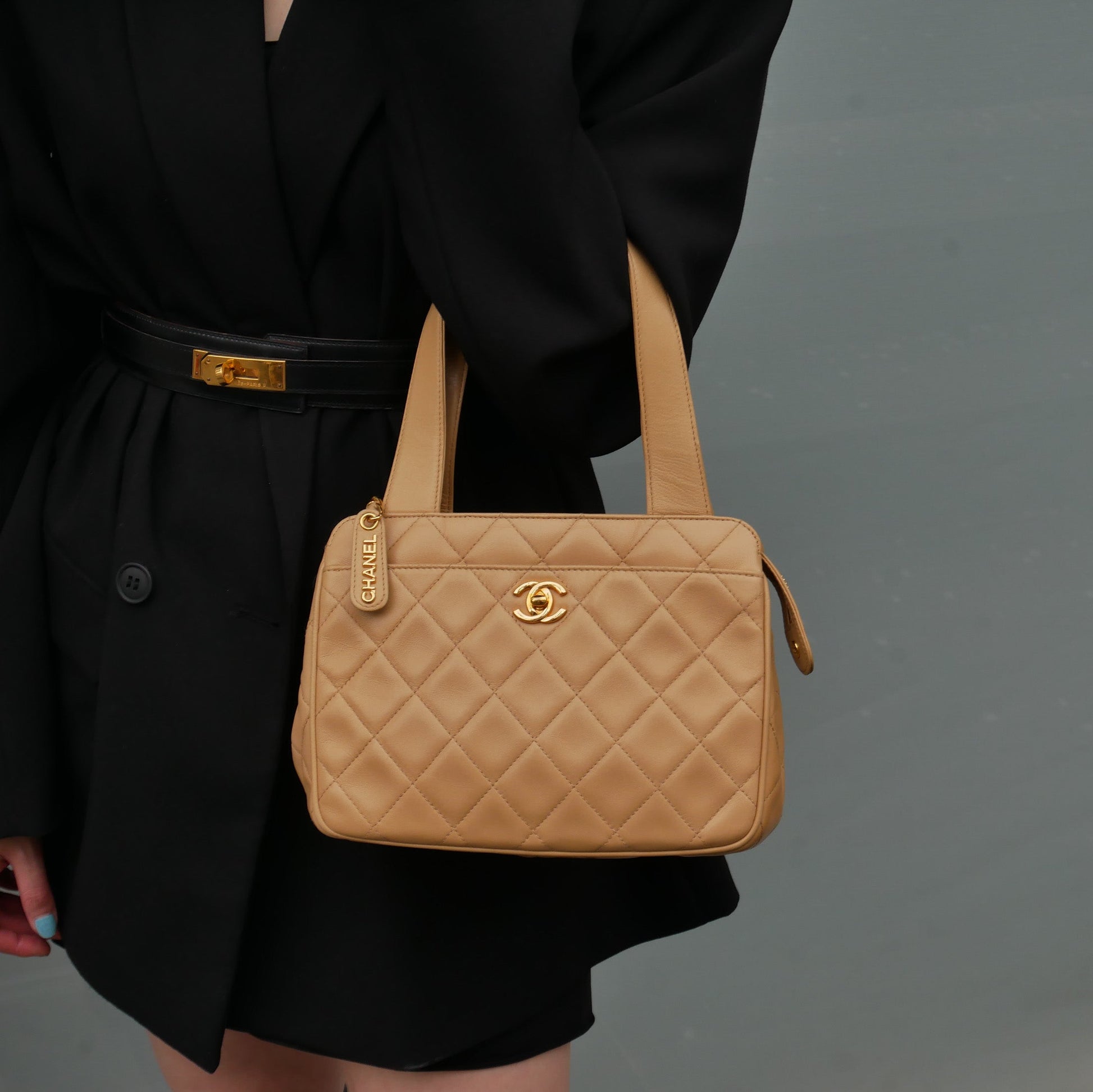 CHANEL 1997 Beige Lambskin Quilted Handbag