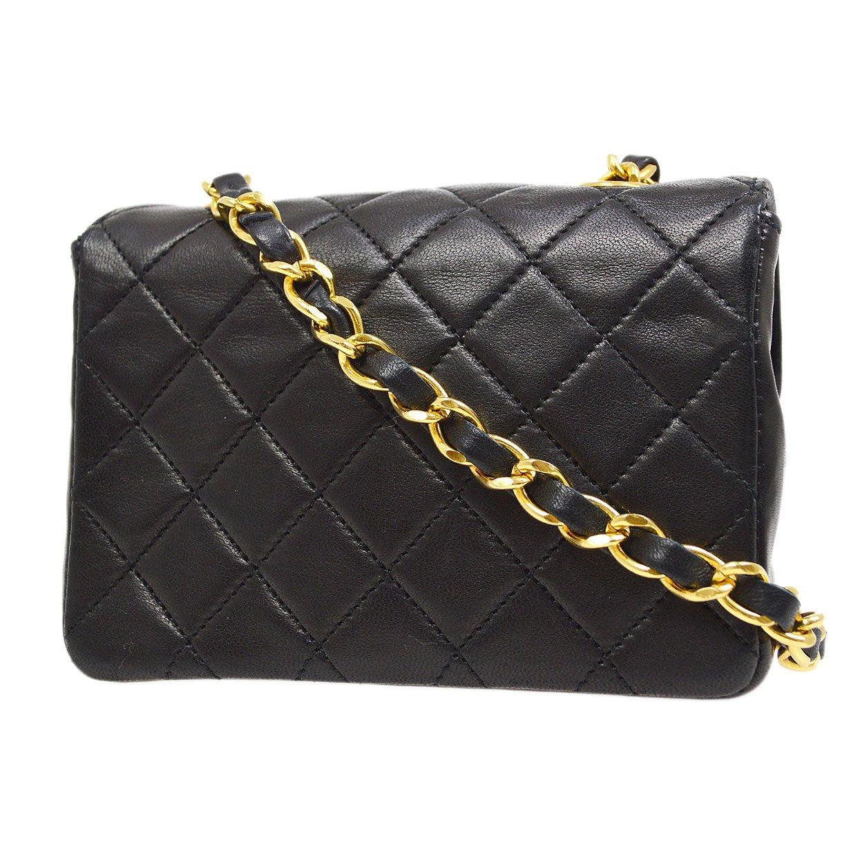 CHANEL 1989-1991 Black LAMBSKIN Straight FLAP MICRO