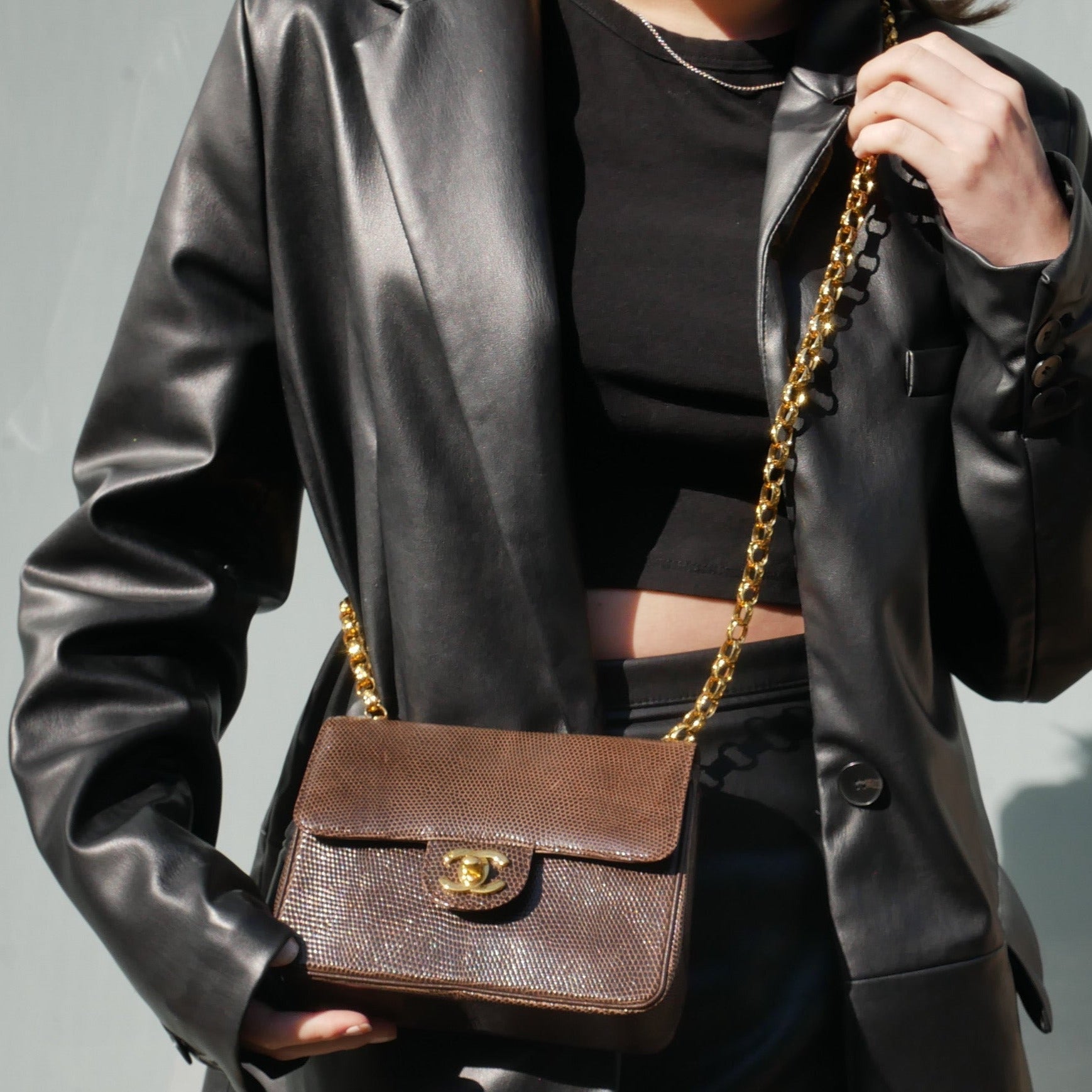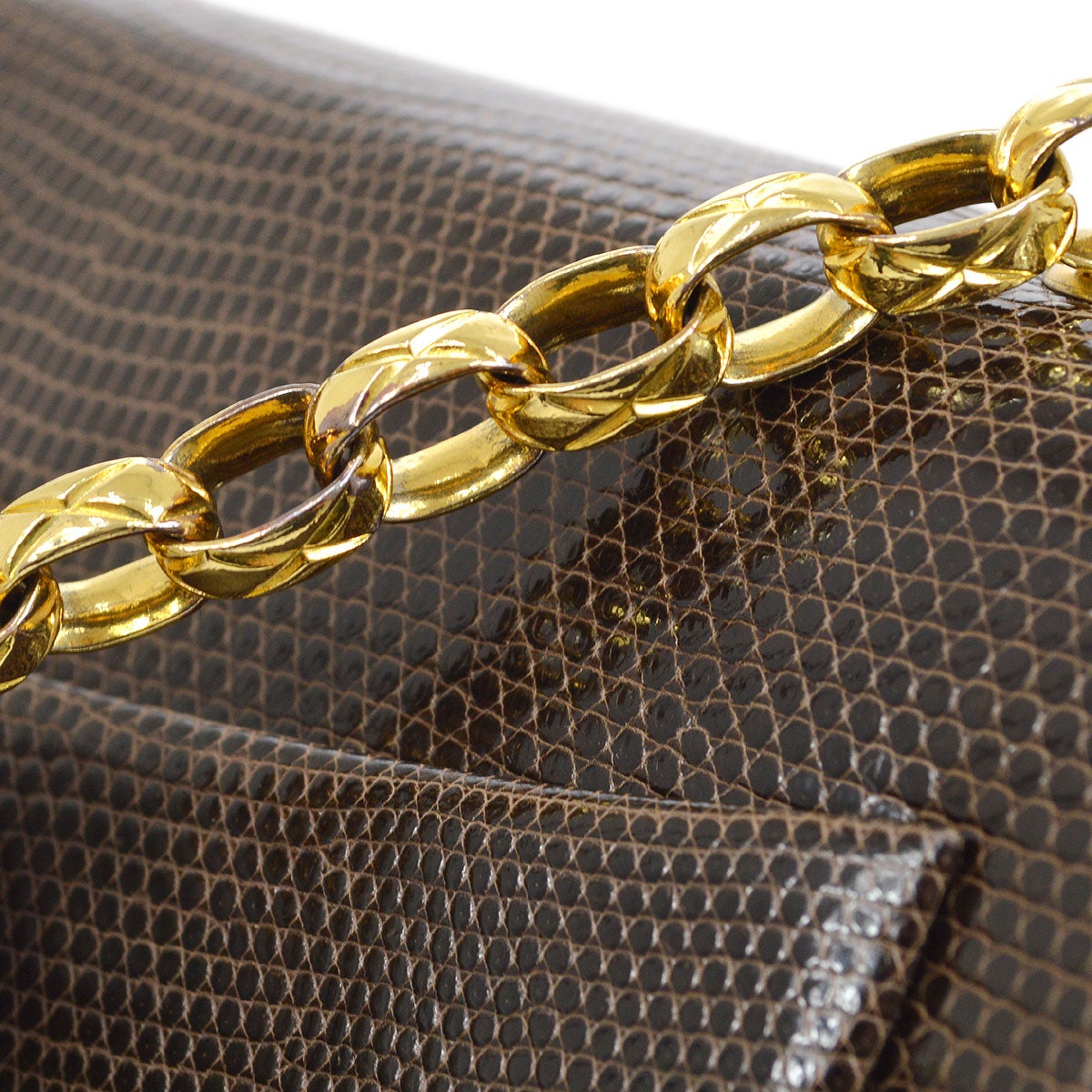 CHANEL 1989-1991 Classic Square Flap 17 Brown Lizard