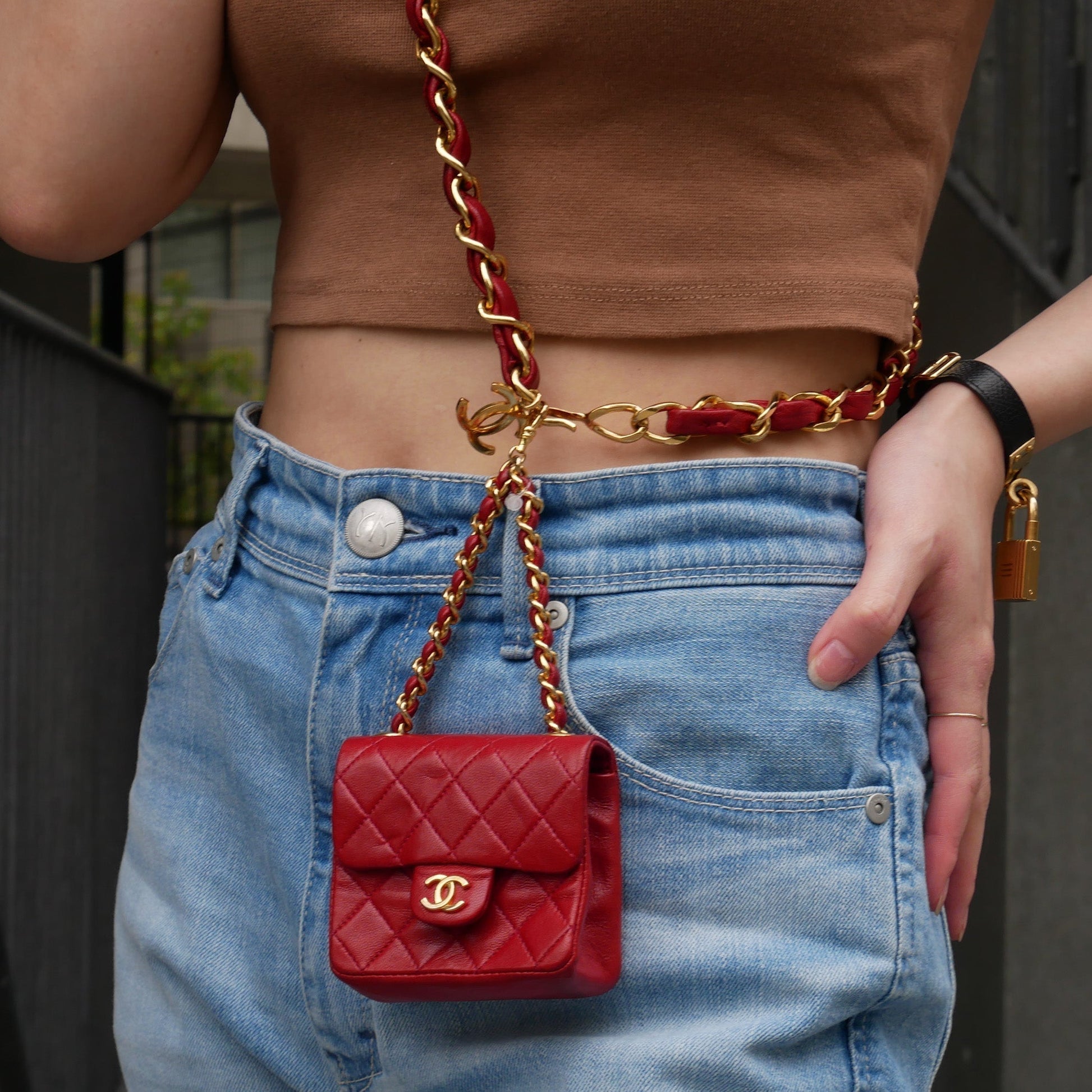 CHANEL 1990s Red Lambskin Belt Bag Micro