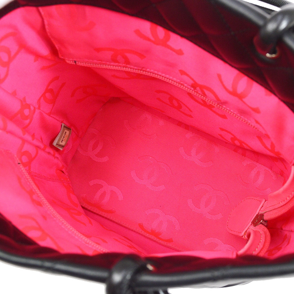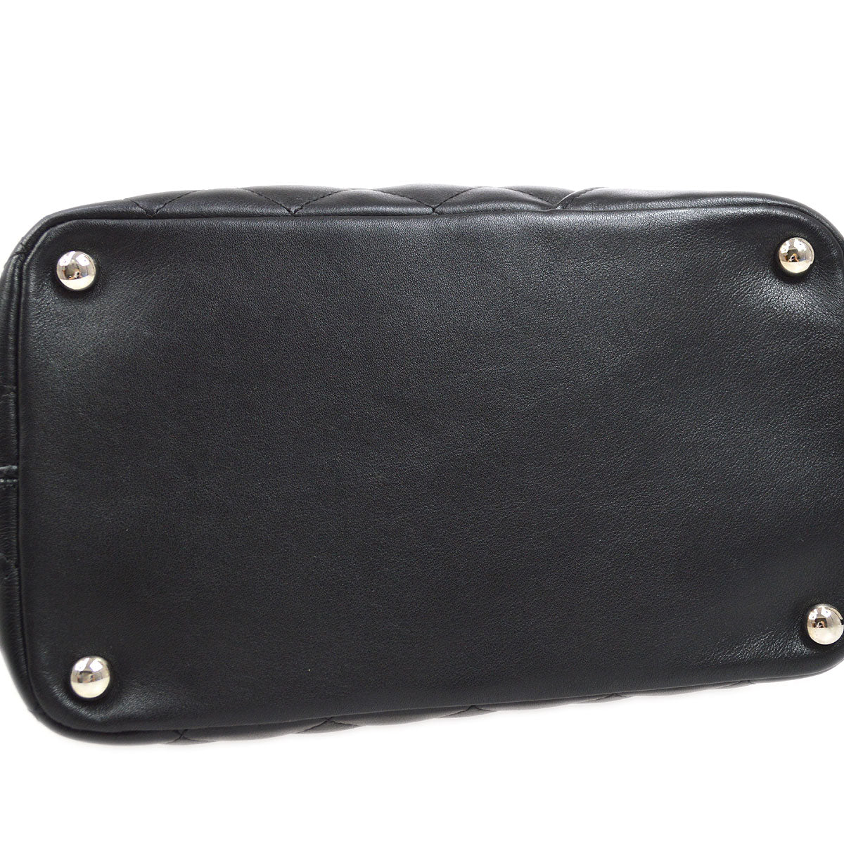 CHANEL Quilted Cambon Ligne Tote Handbag Black Calfskin