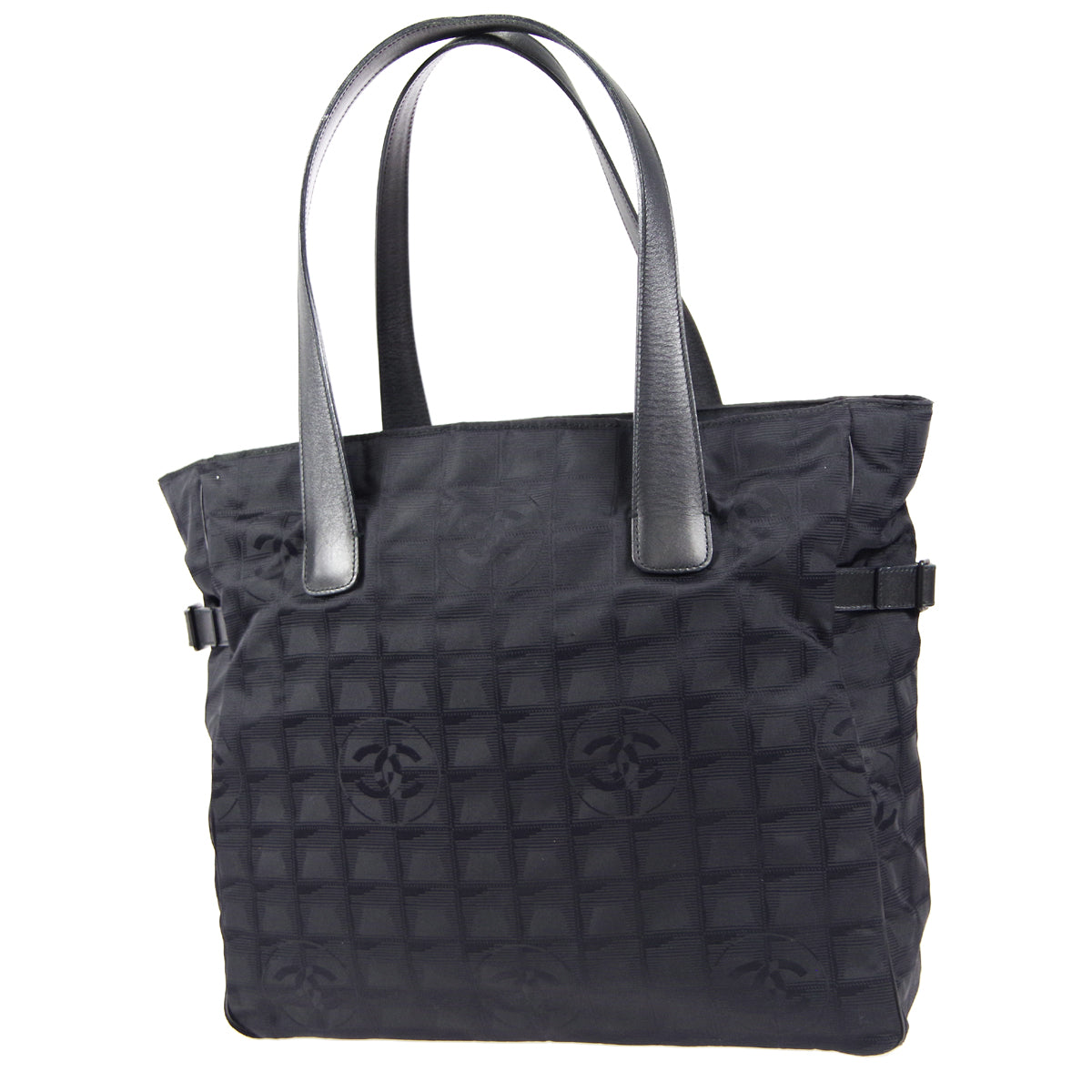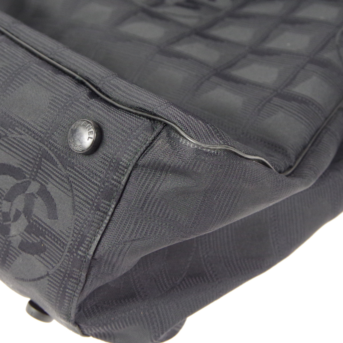 CHANEL Choco Bar Travel Line Tote Handbag Black Jacquard