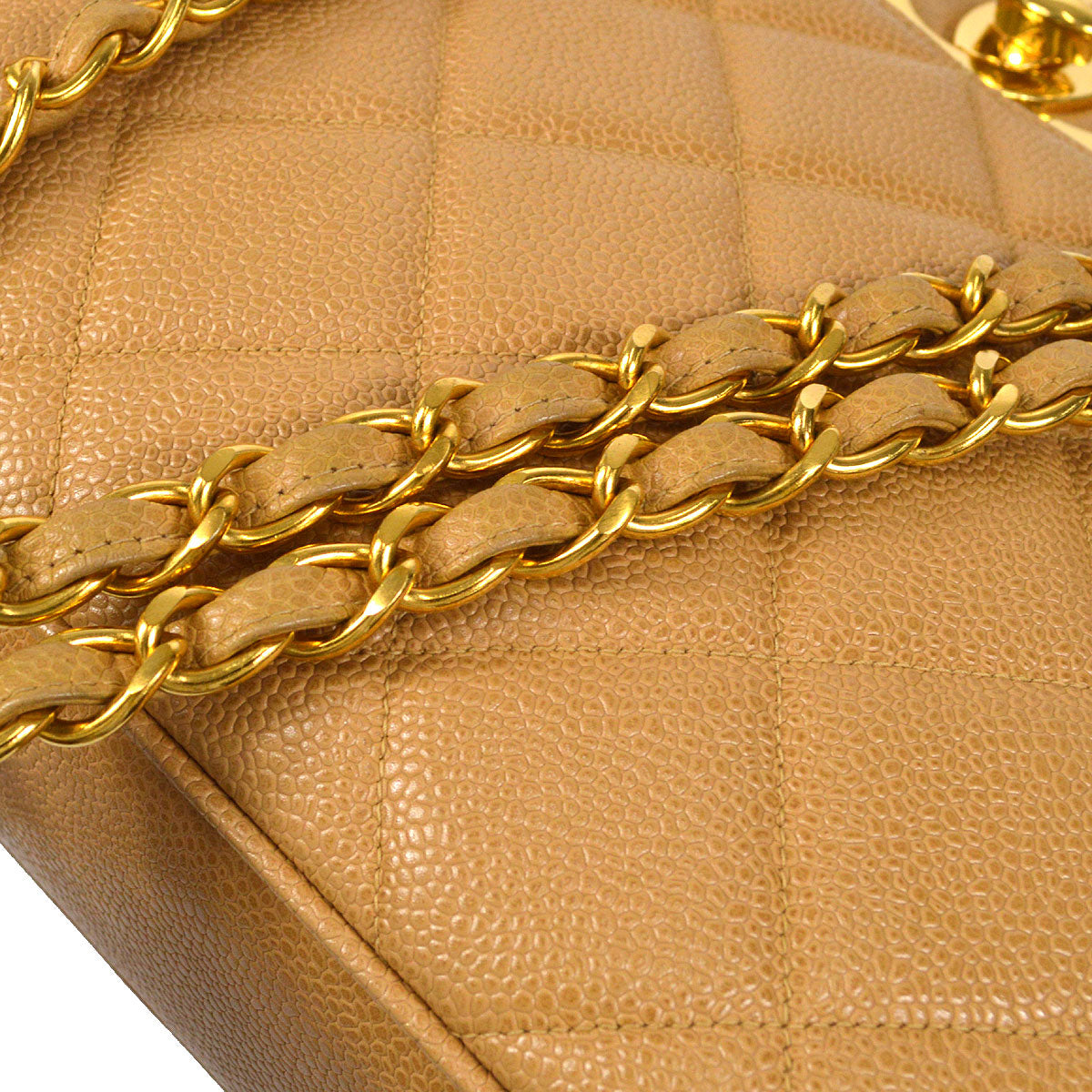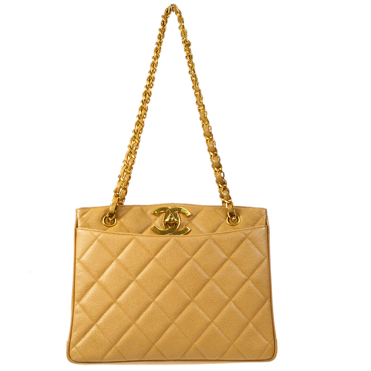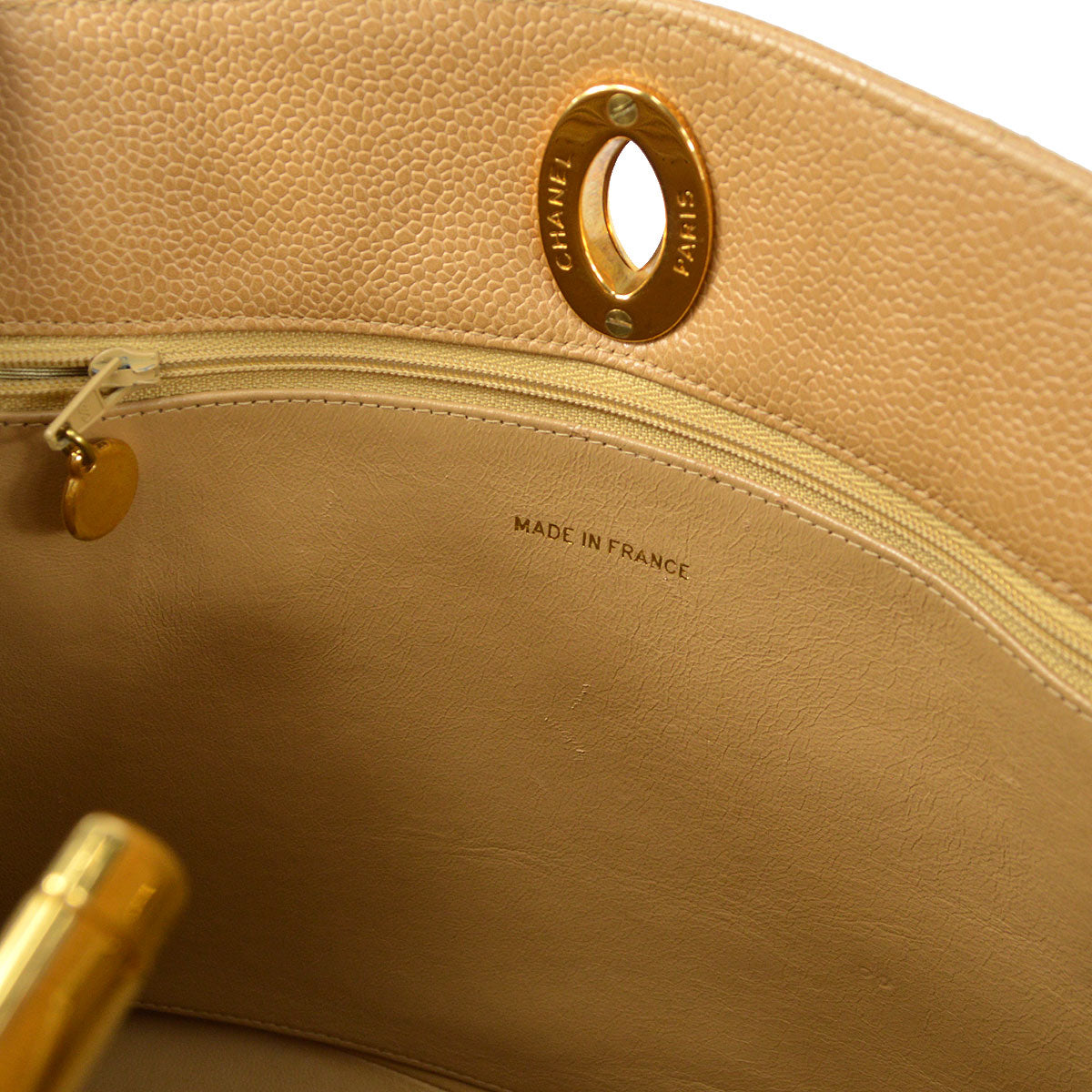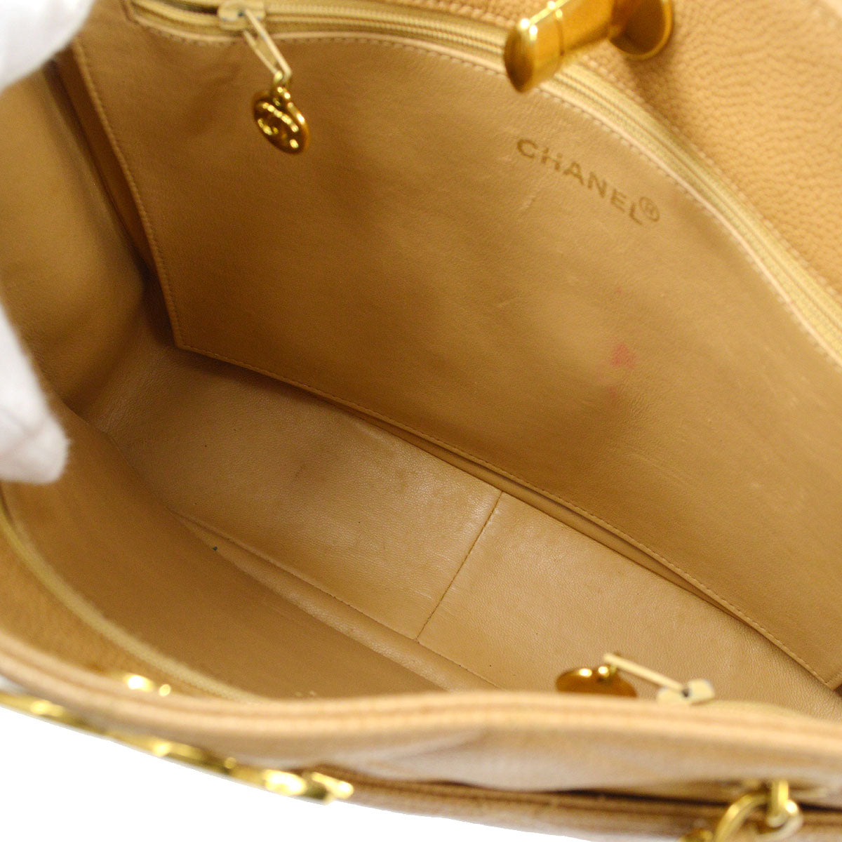 CHANEL Chain Shoulder Tote Bag Beige Caviar