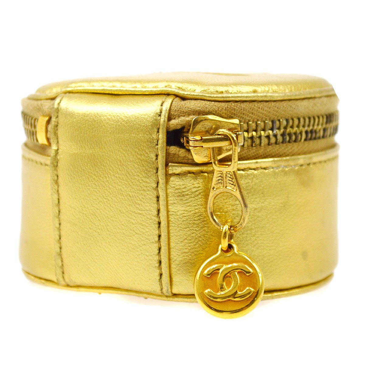 CHANEL 1994-1996 Timeless Jewelry Case Gold Lambskin