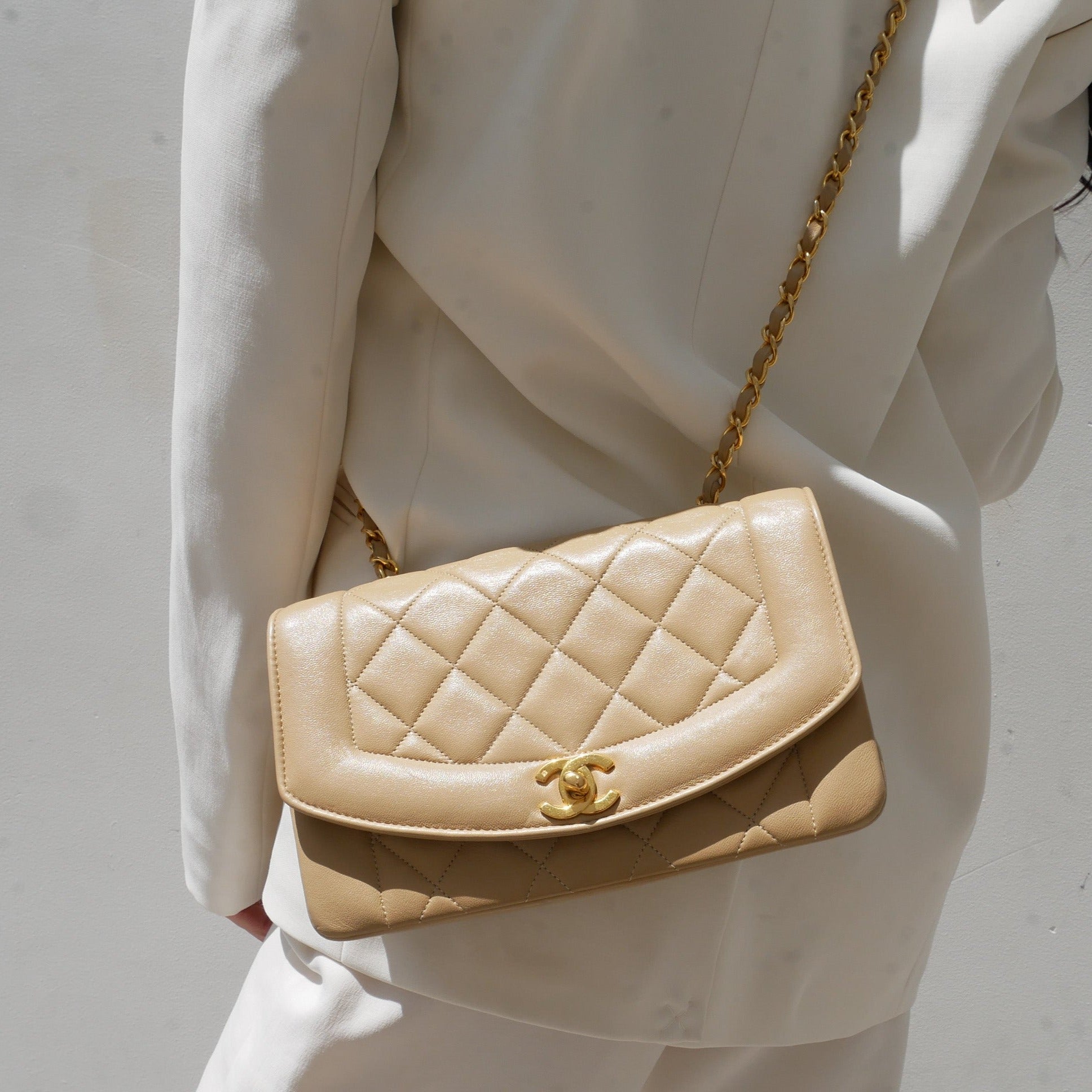 CHANEL Small Diana Chain Shoulder Bag Beige Lambskin