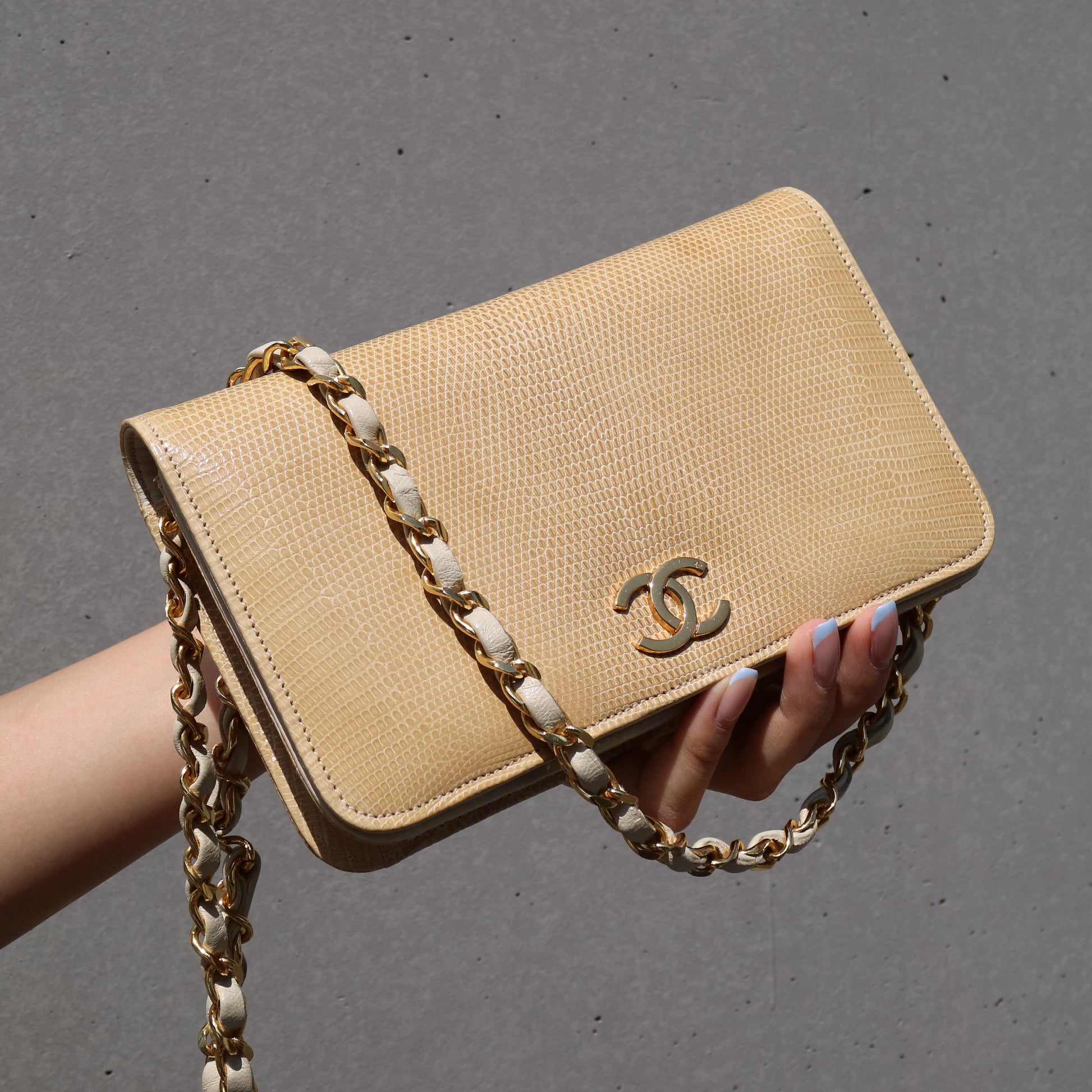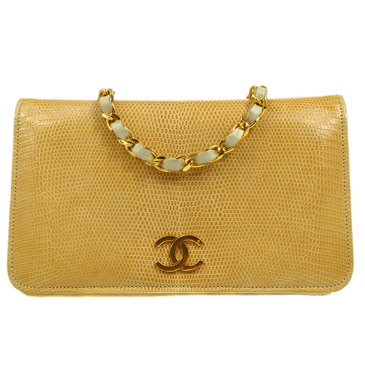 CHANEL Full Flap Chain Shoulder Bag Beige Lizard
