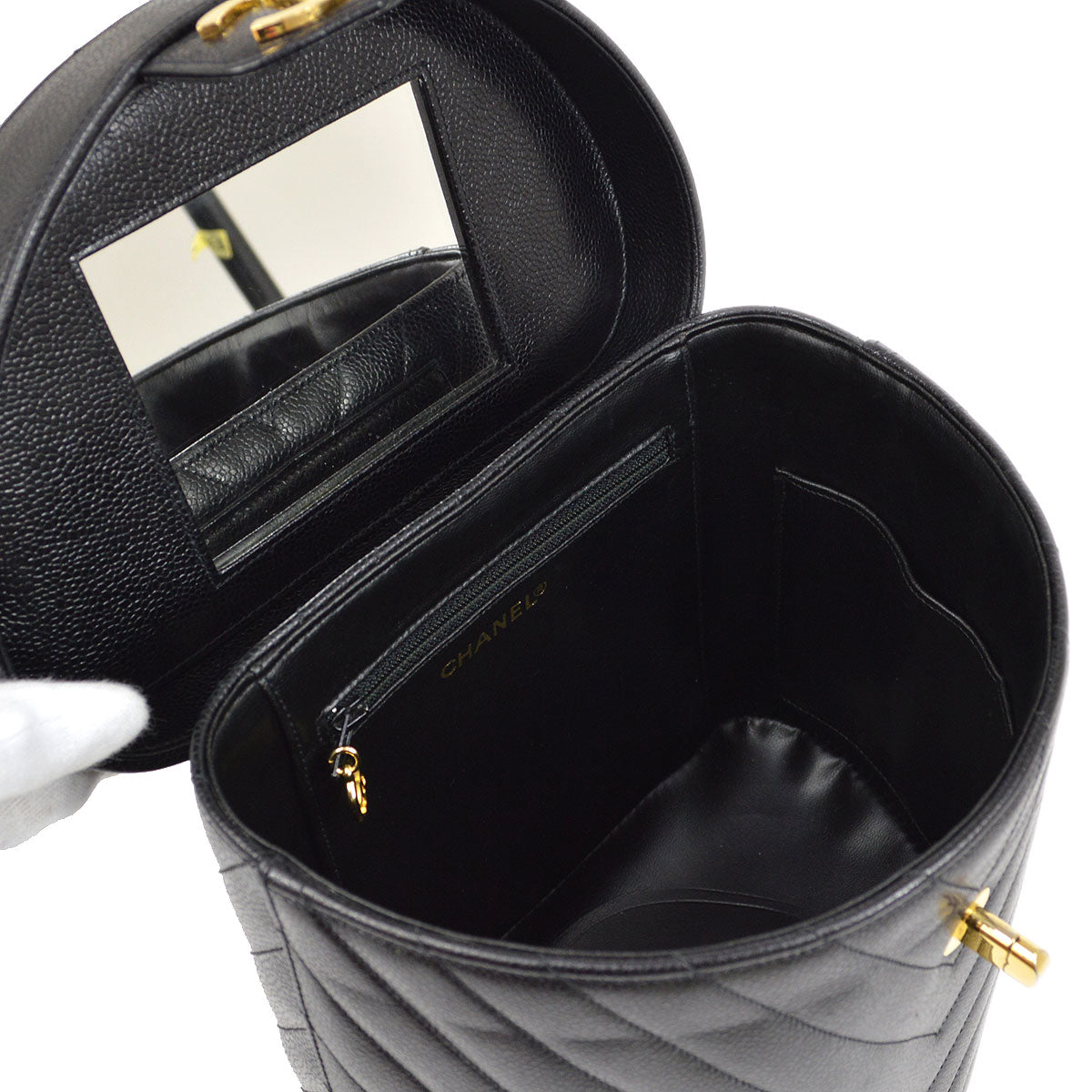 CHANEL 1996-1997 Black Caviar Chevron Vanity Handbag