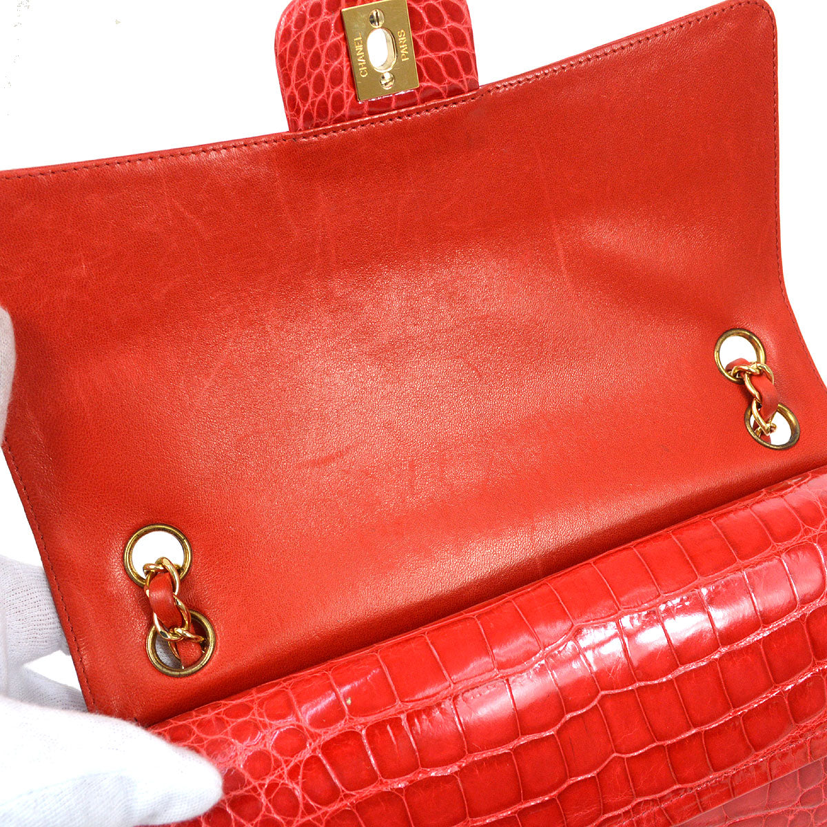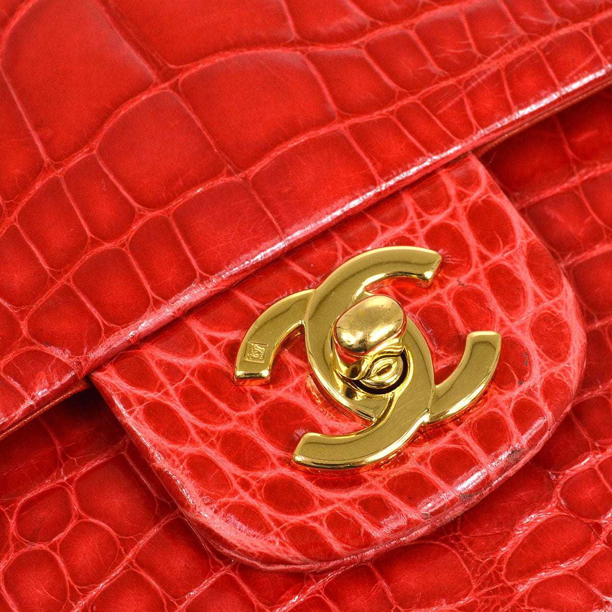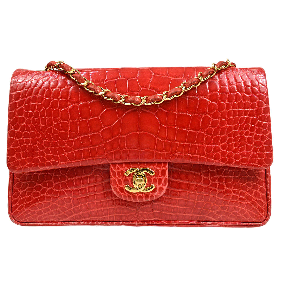 CHANEL Classic Double Flap Medium Shoulder Bag Red Crocodile