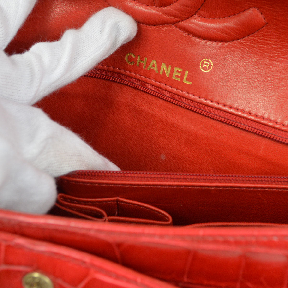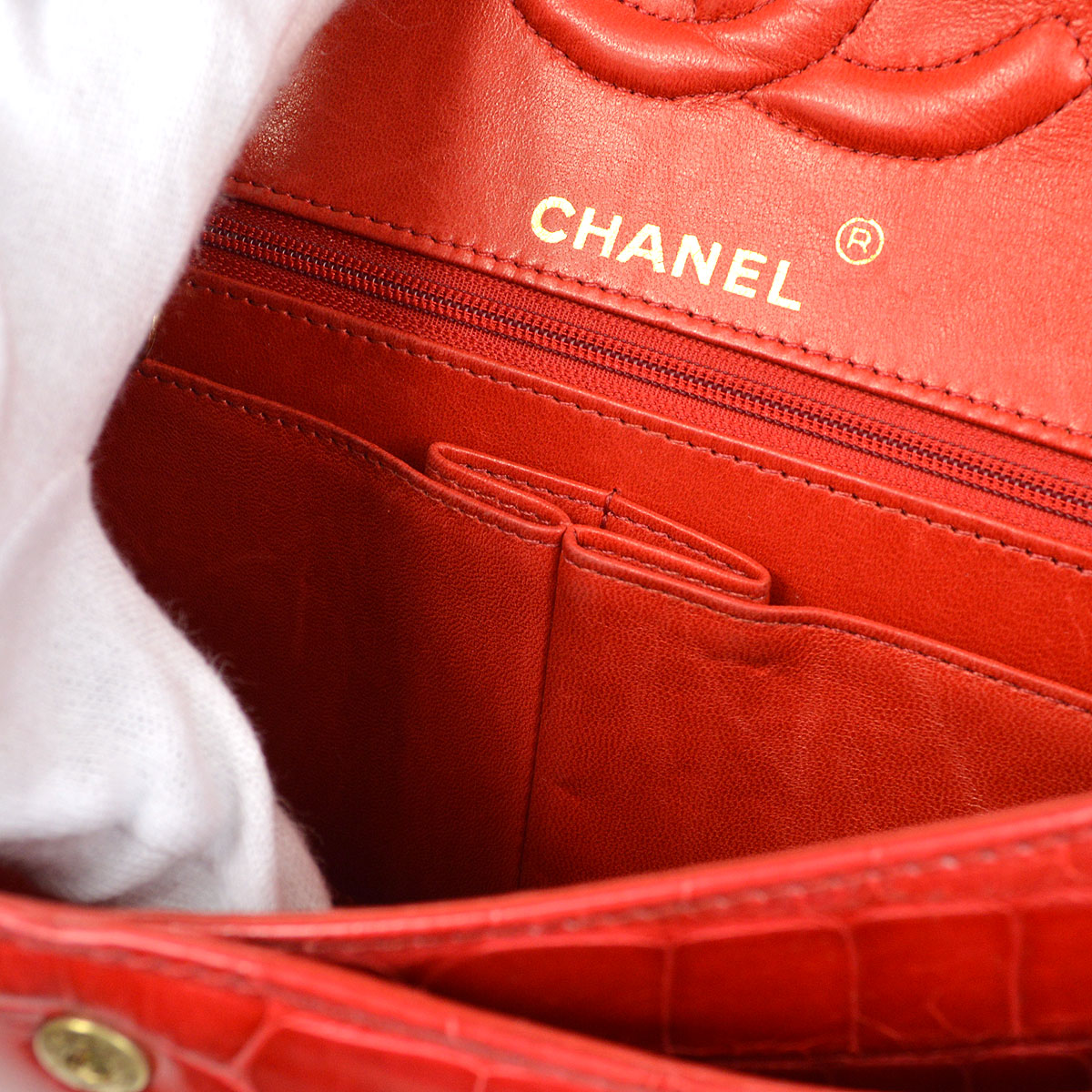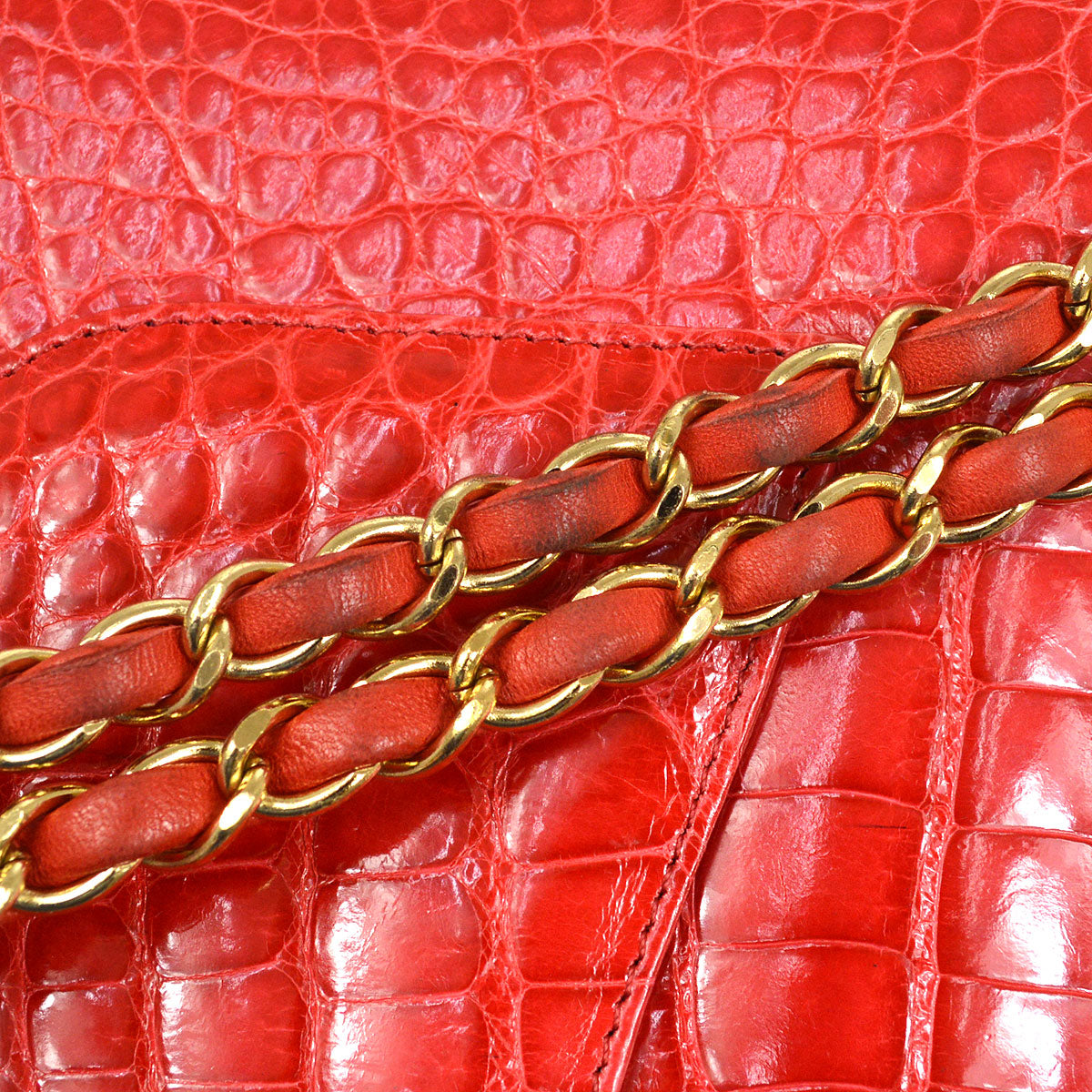 CHANEL Classic Double Flap Medium Shoulder Bag Red Crocodile