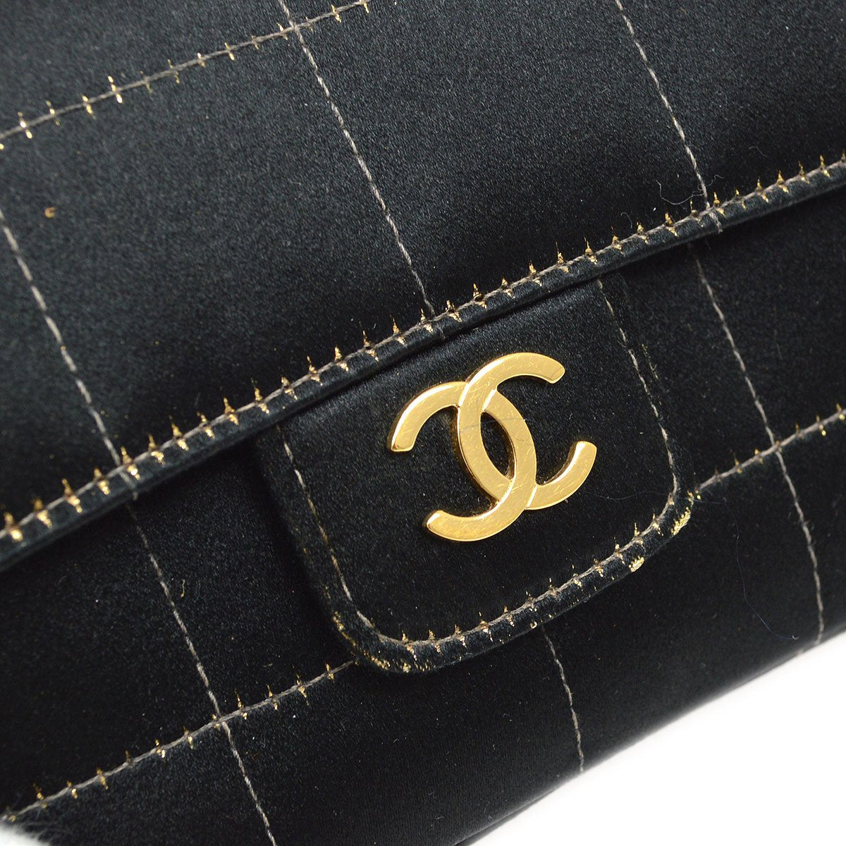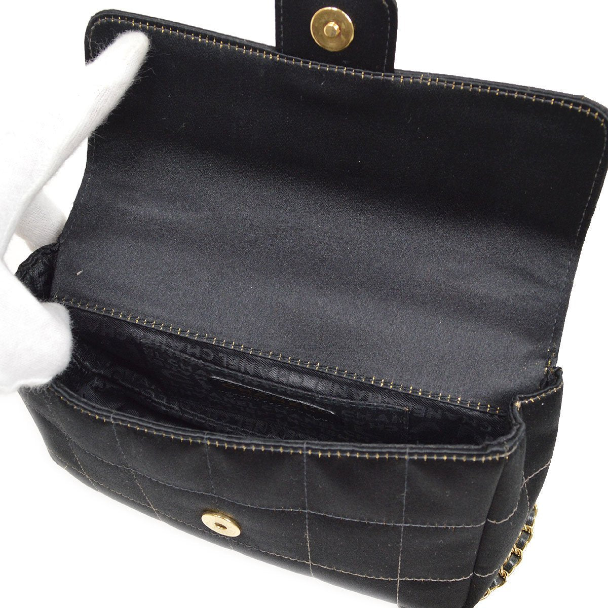 CHANEL 2003-2004 Camellia Choco Bar Chain Shoulder Bag Black Satin