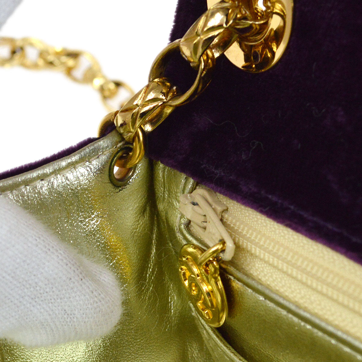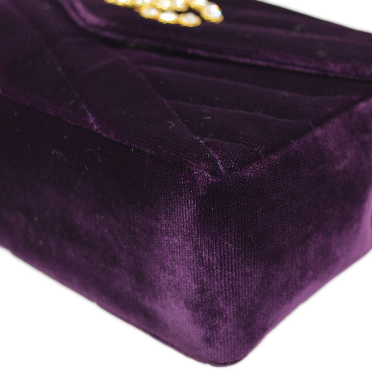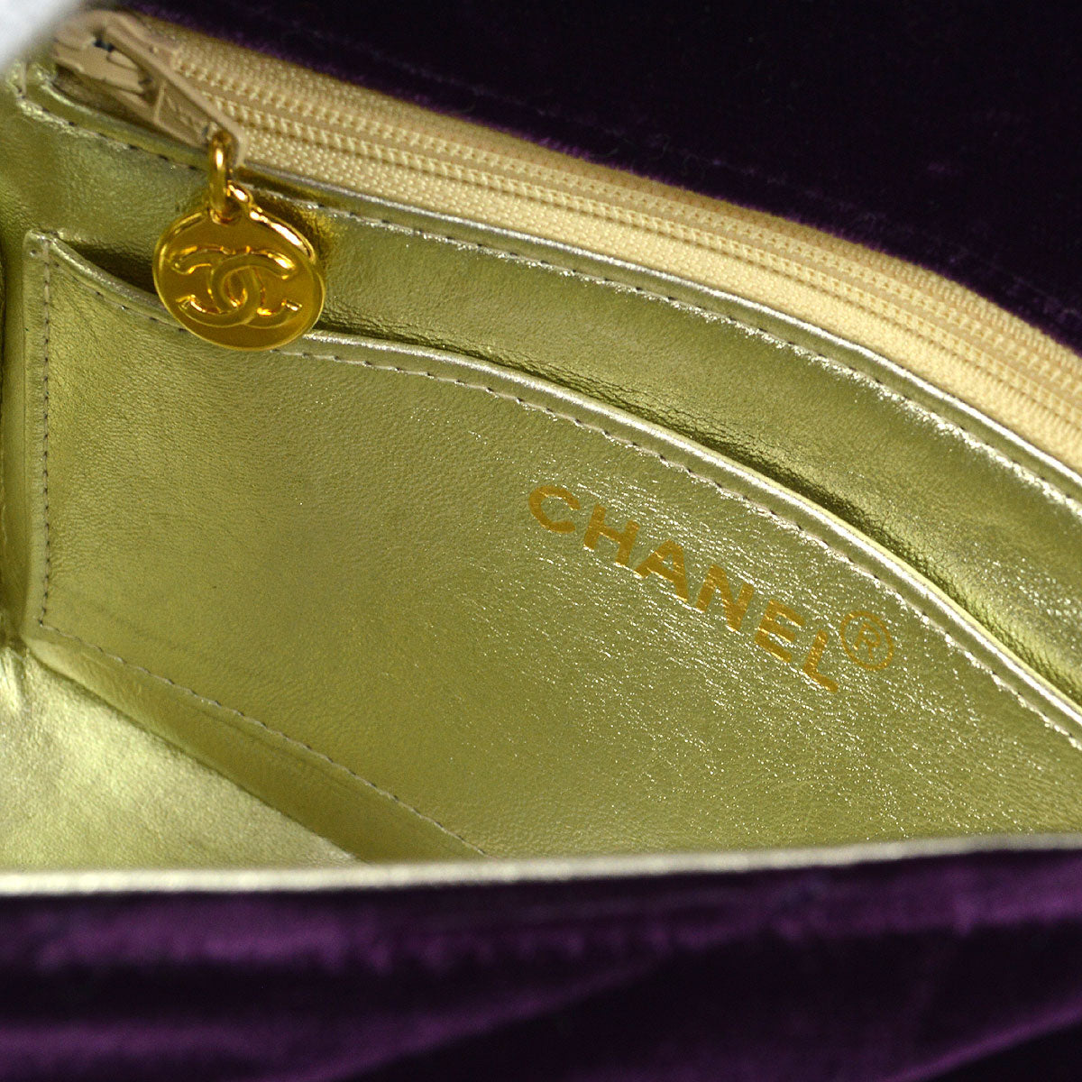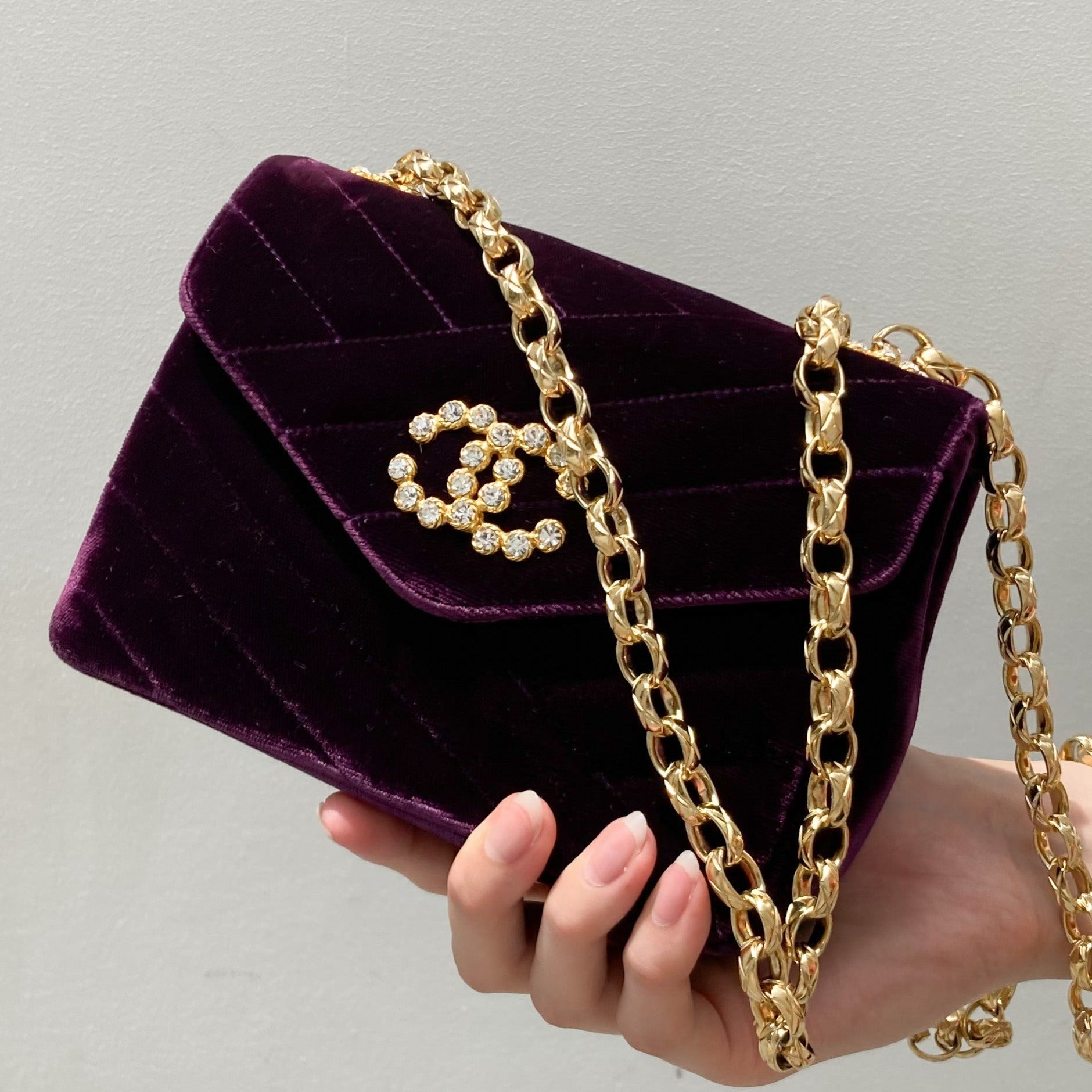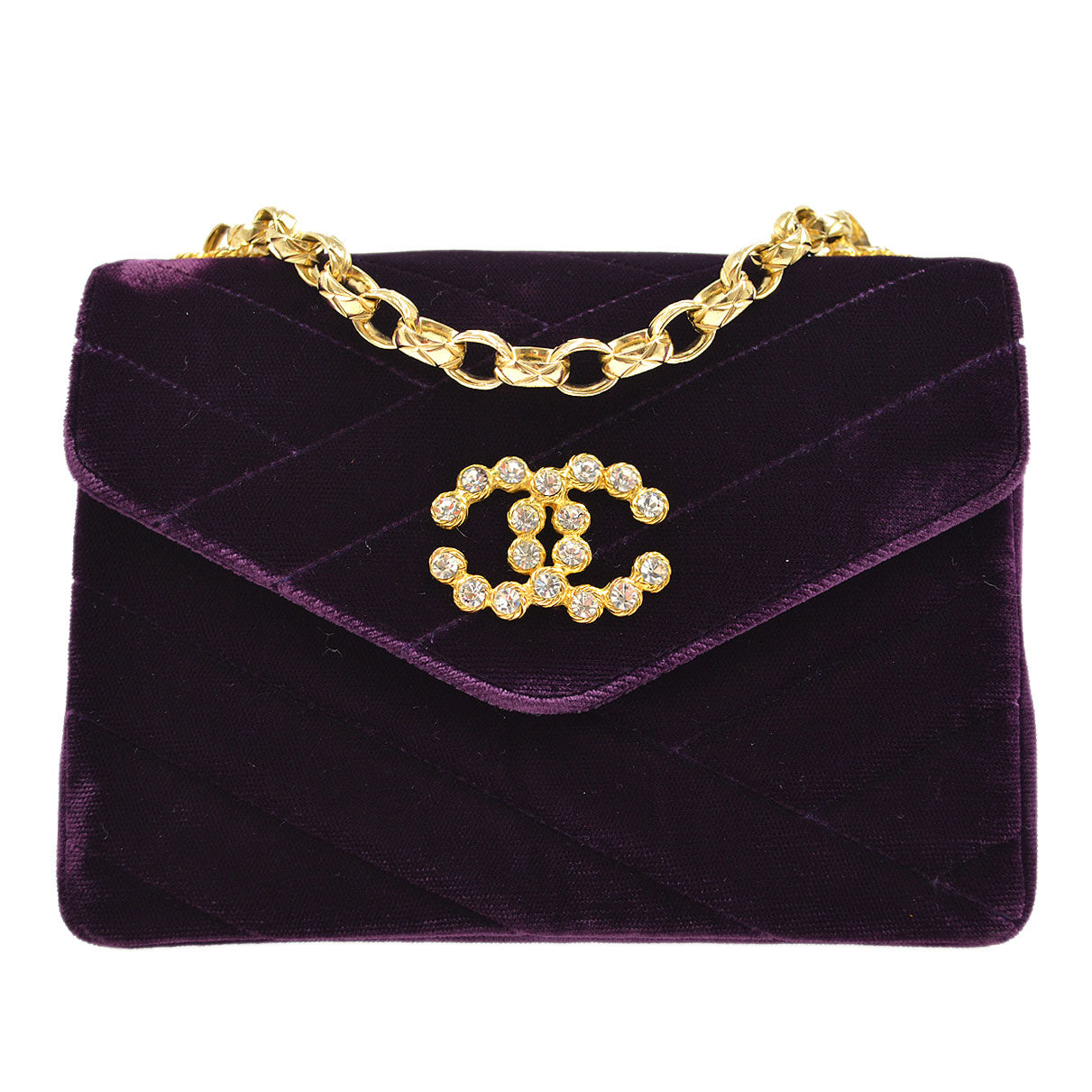 CHANEL * 1991-1994 Purple Velvet Rhinestone CC Diagonal Letter Flap Bag