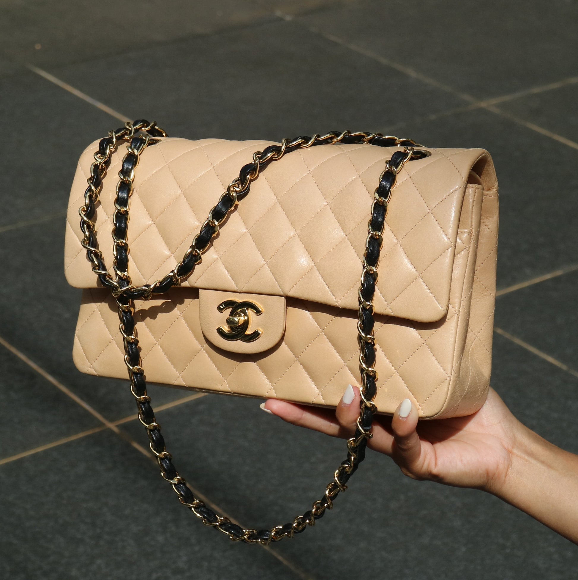 CHANEL 2004-2005 Classic Flap Medium Beige Lambskin