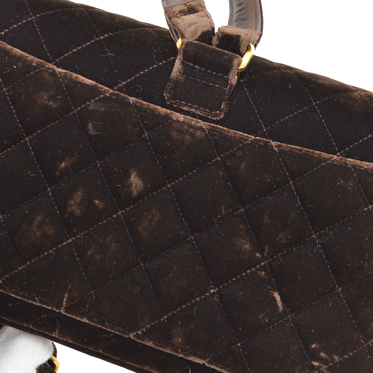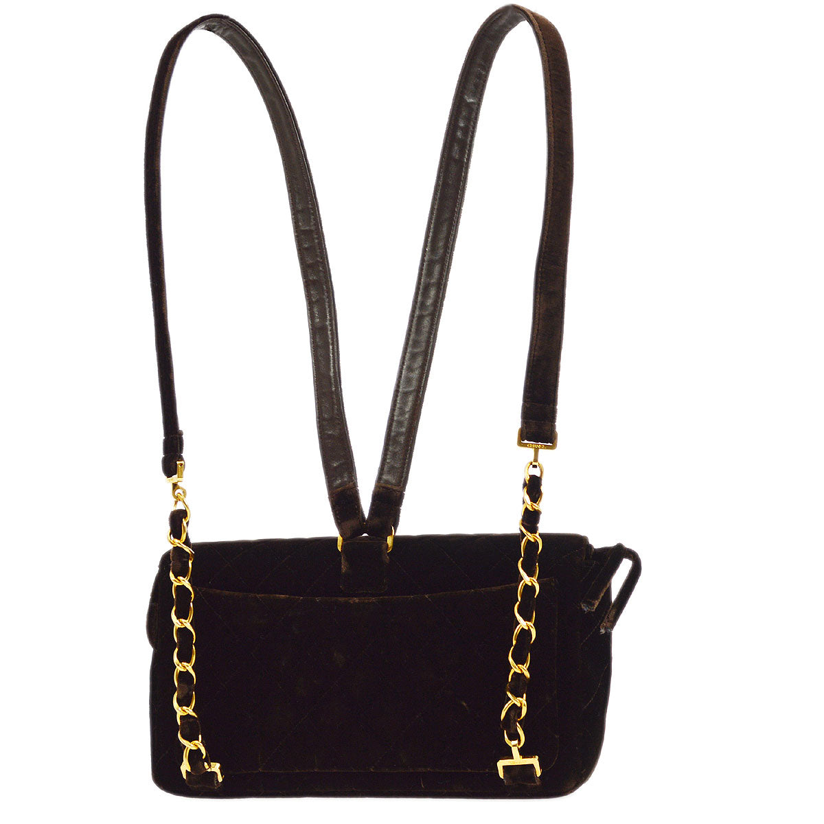 CHANEL Backpack Bag Chain Velvet Brown
