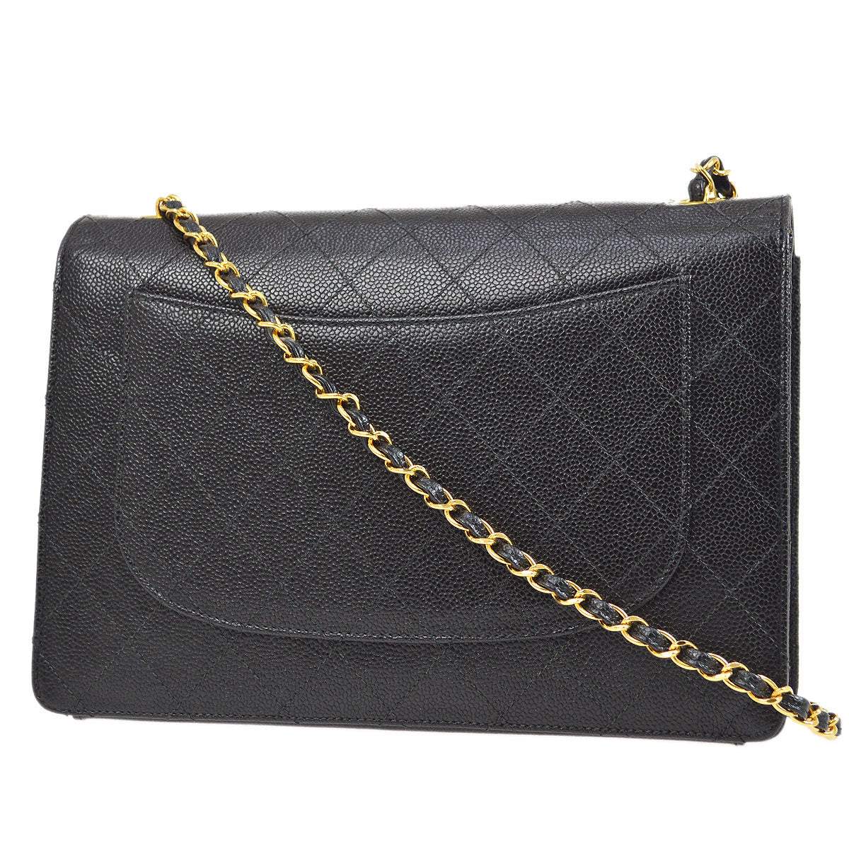 CHANEL Classic Flap Jumbo Chain Shoulder Bag Black Caviar