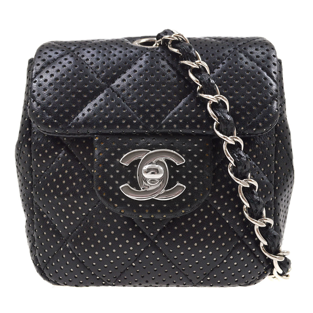 CHANEL 2007 Black Lambskin Perforated Classic Flap Micro
