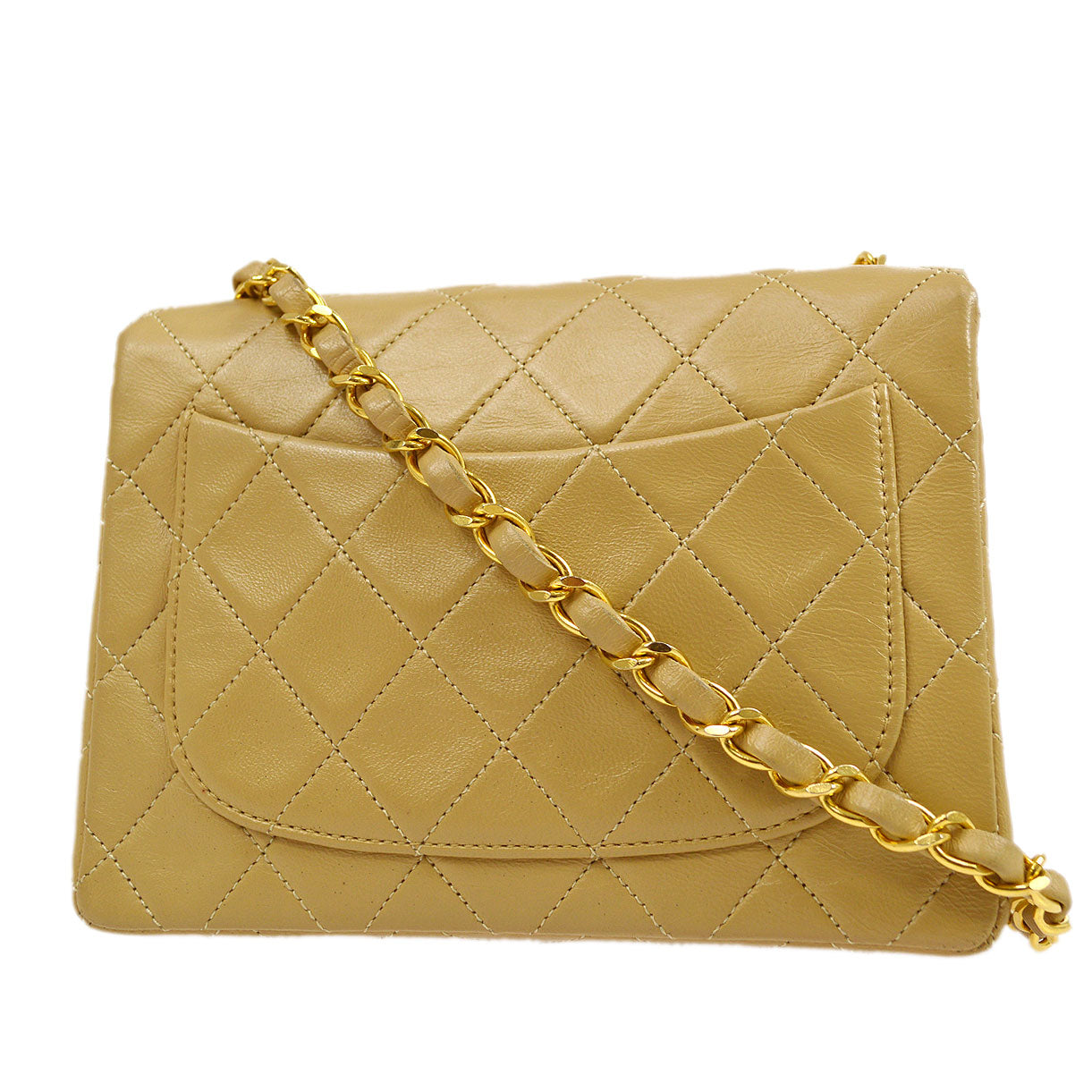 CHANEL Classic Flap Mini Square Chain Shoulder Bag Beige Lambskin