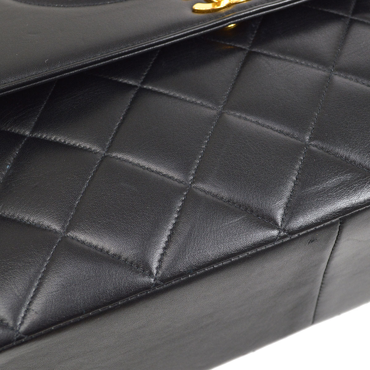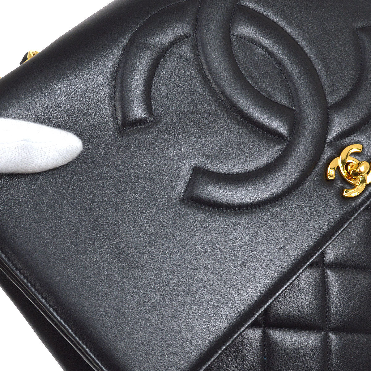 CHANEL 1991-1994 Chain Shoulder Bag Black Lambskin