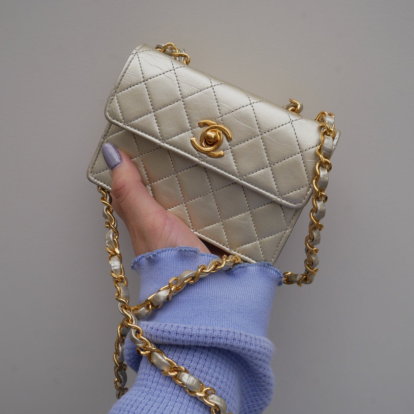 CHANEL 1989-1991 Gold Lambskin Straight Flap Micro