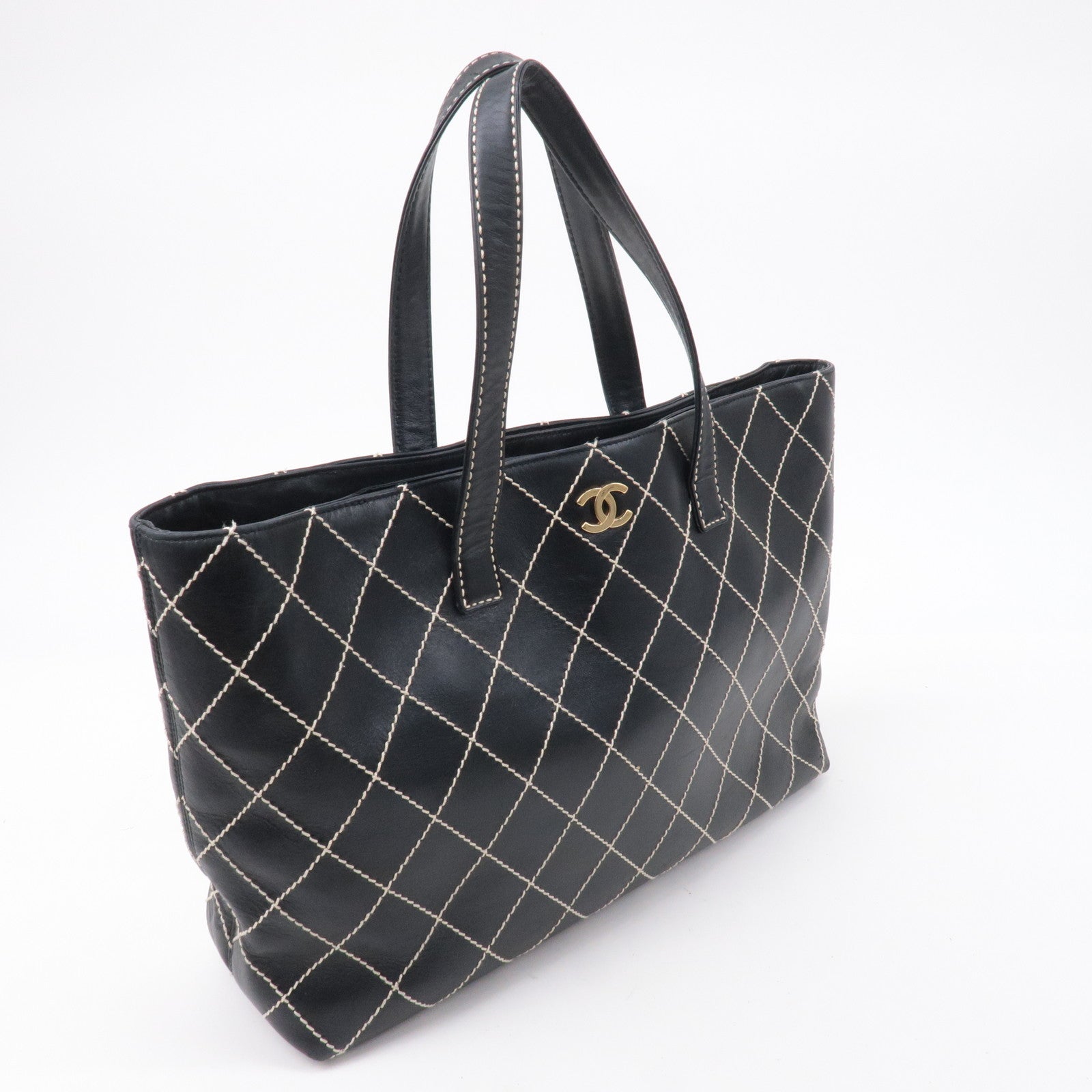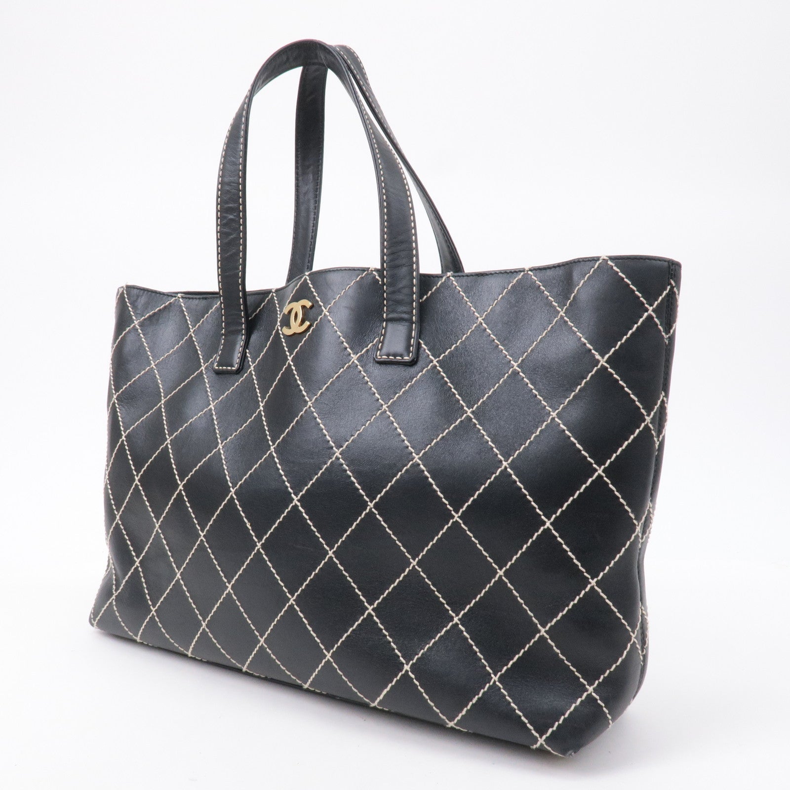 CHANEL Wild Stich Matelasse Leather Tote Bag Black