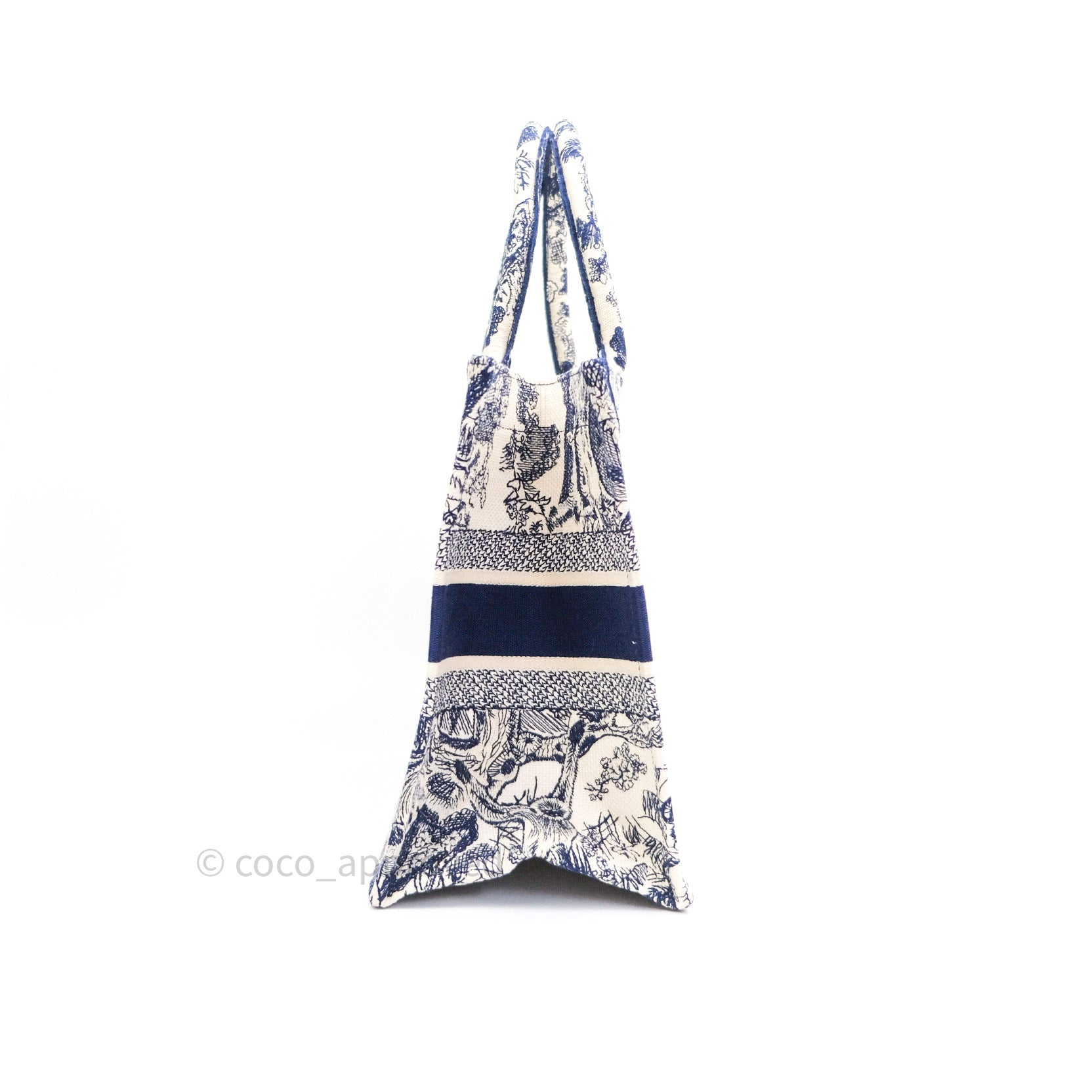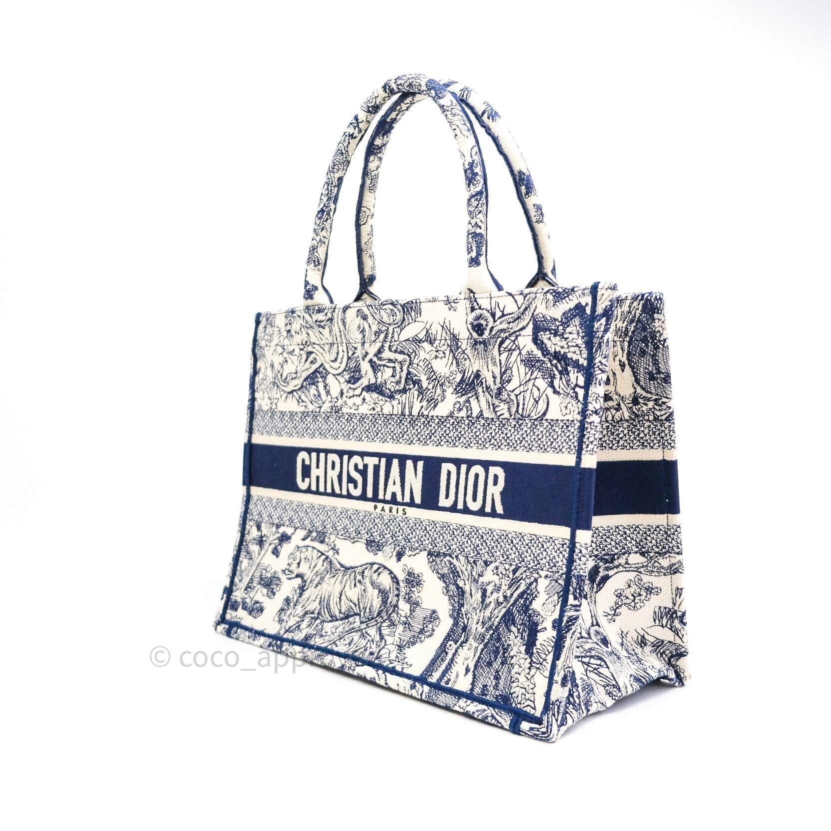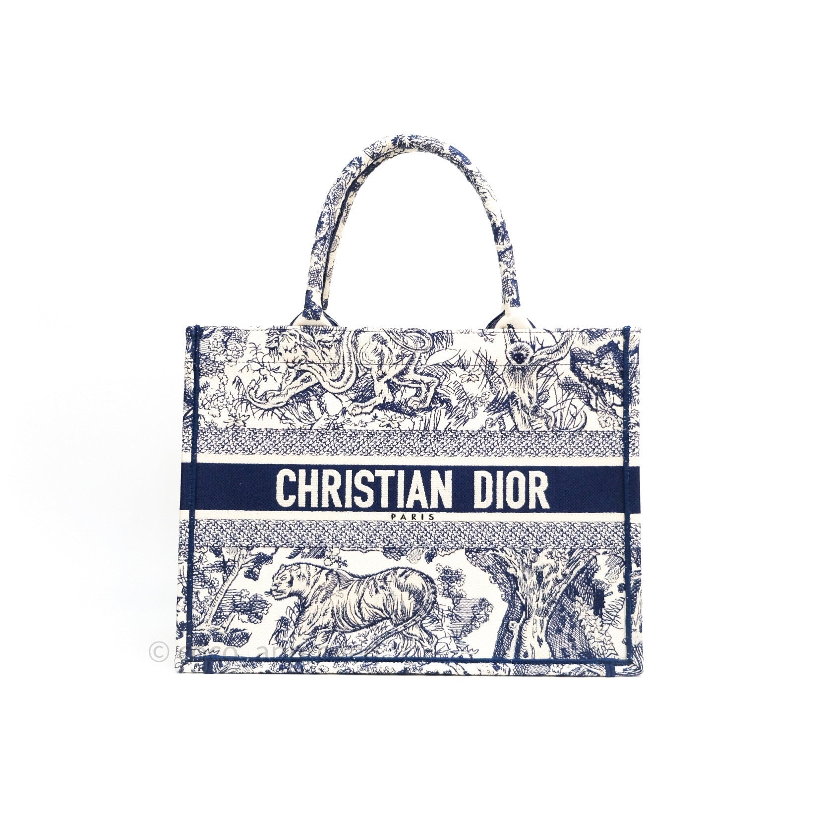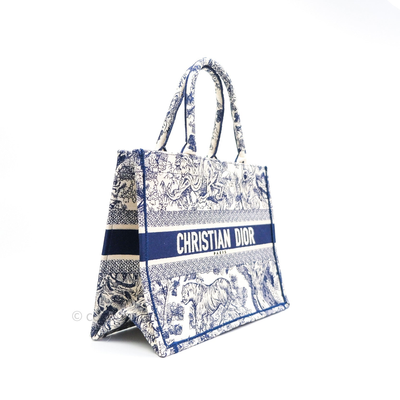 Christian Dior Embroidered Toile De Jouy Small Canvas Book Tote Blue