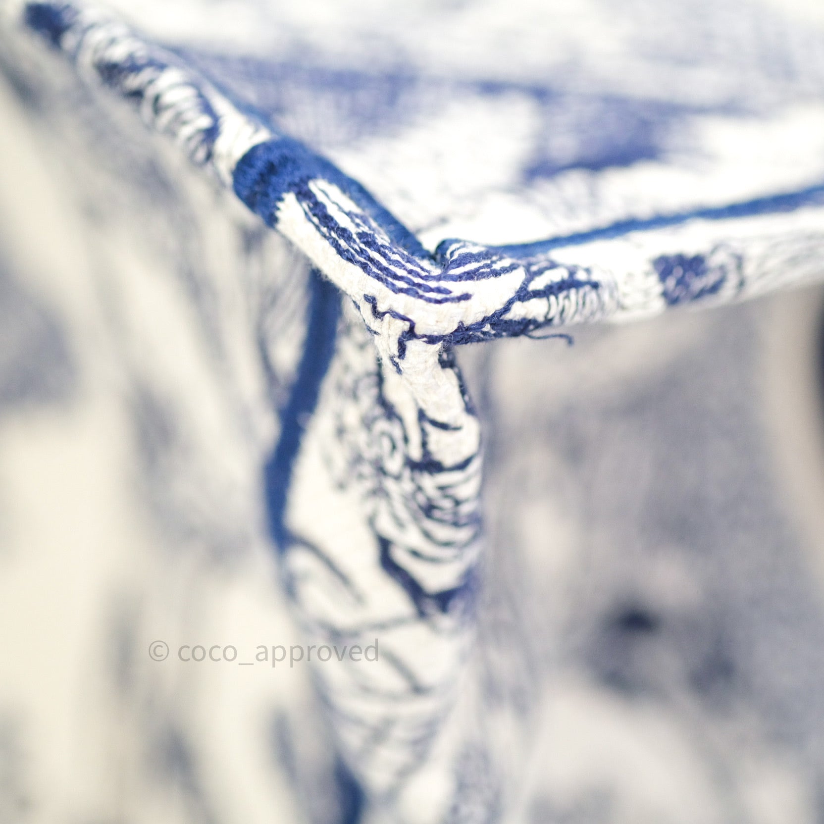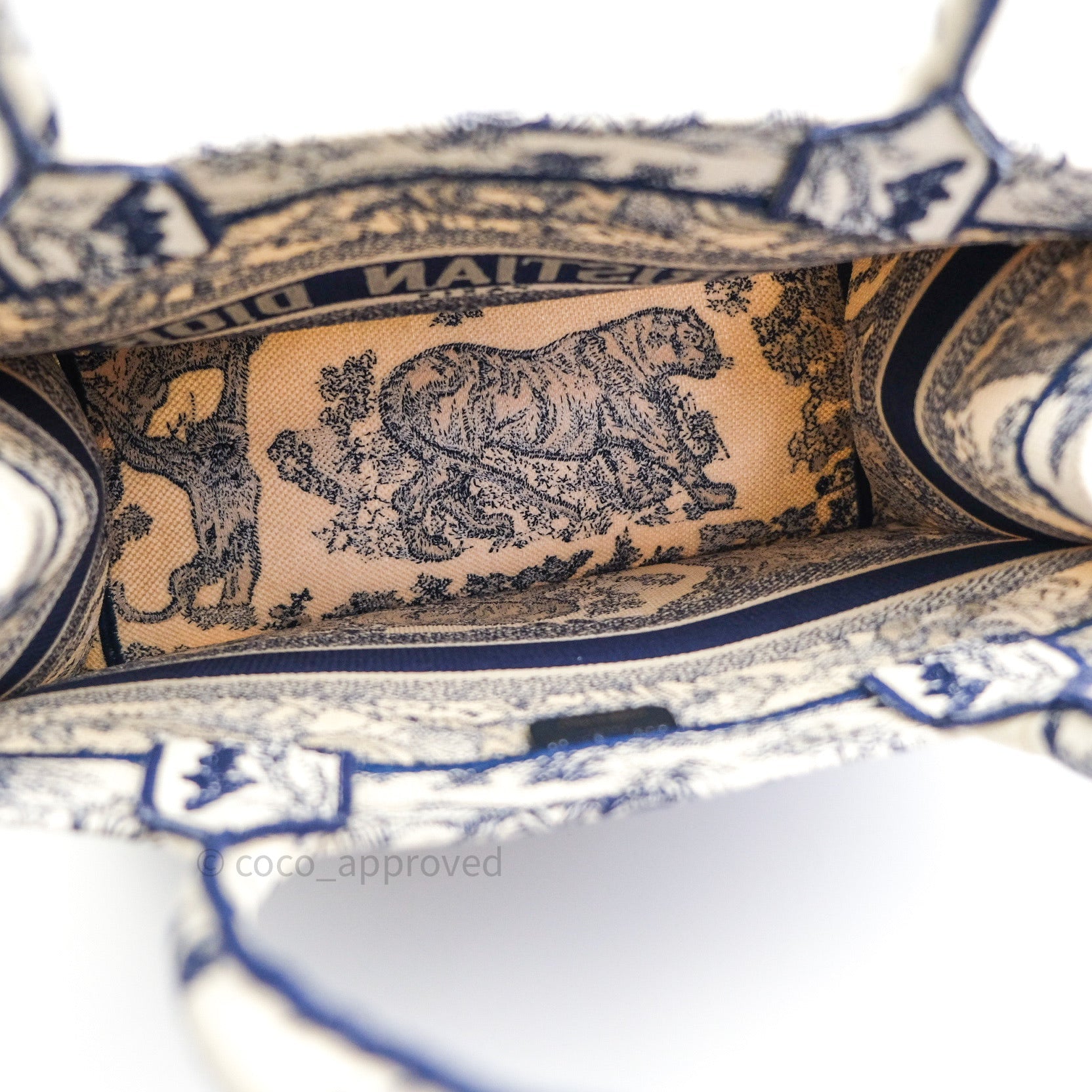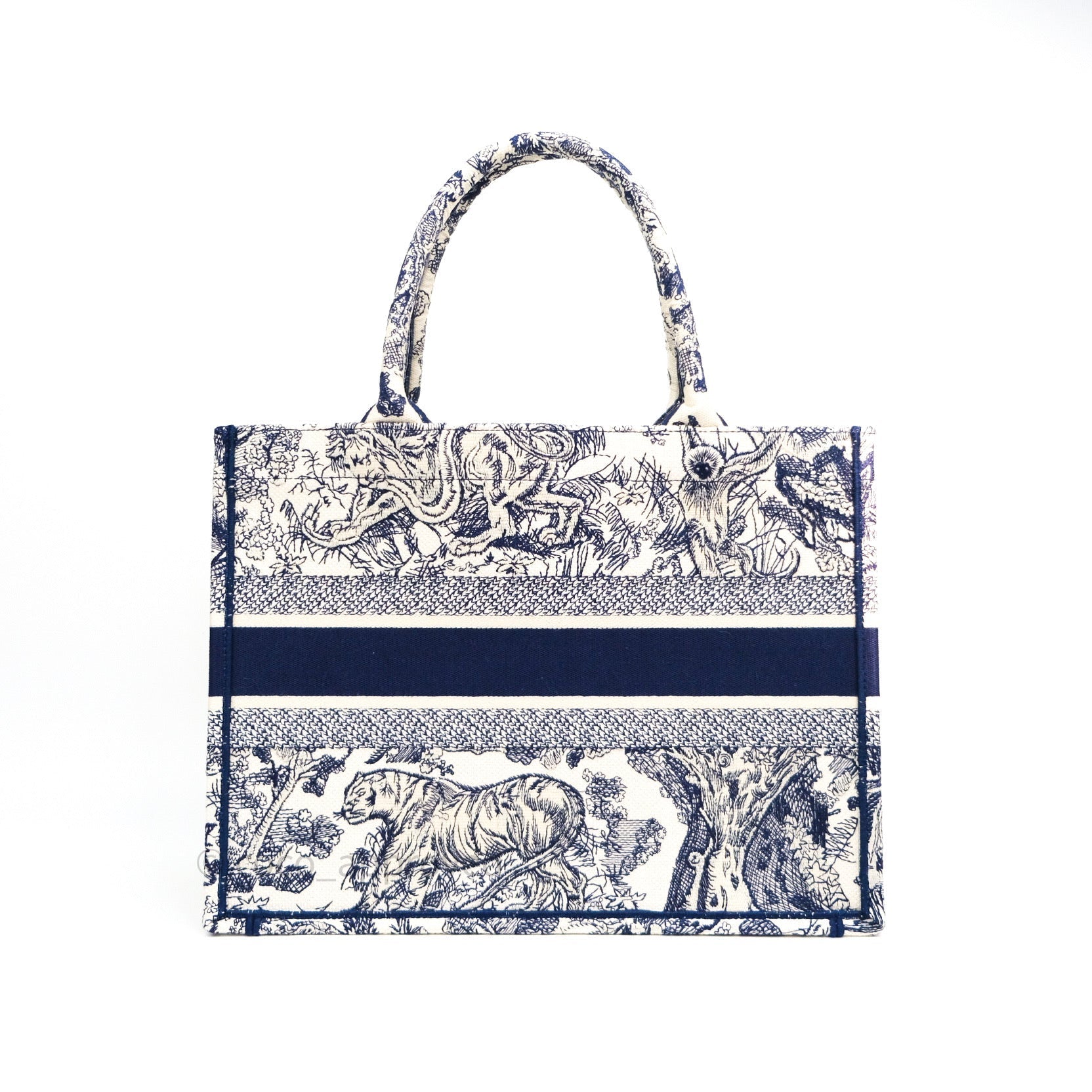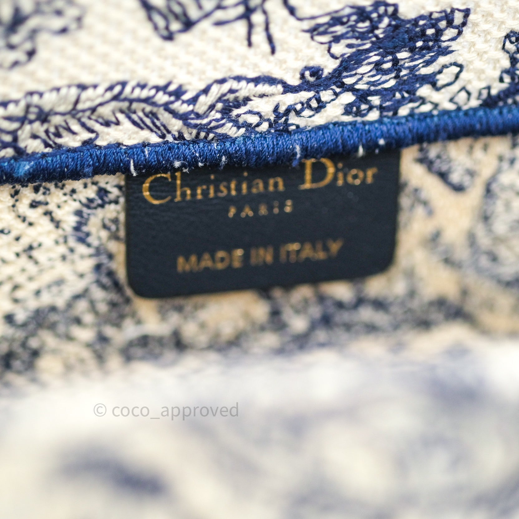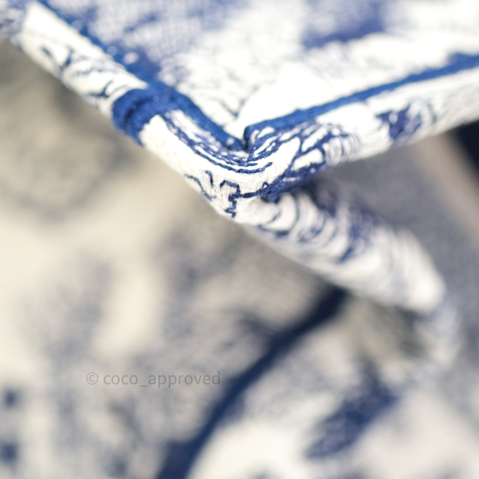 Christian Dior Embroidered Toile De Jouy Small Canvas Book Tote Blue