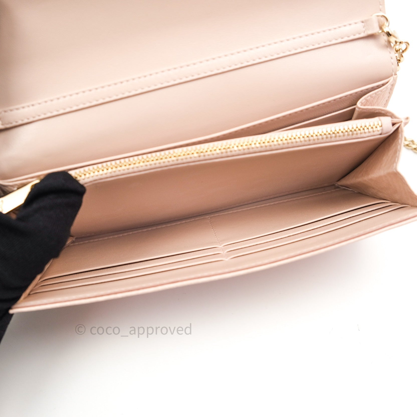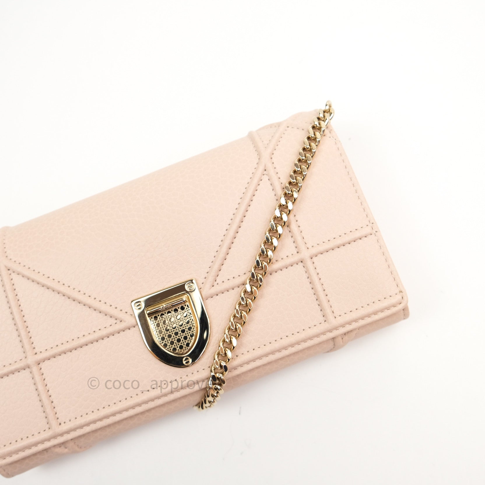 Christian Dior Grained Calfskin Diorama Croisiere Chain Wallet Rose Poudre