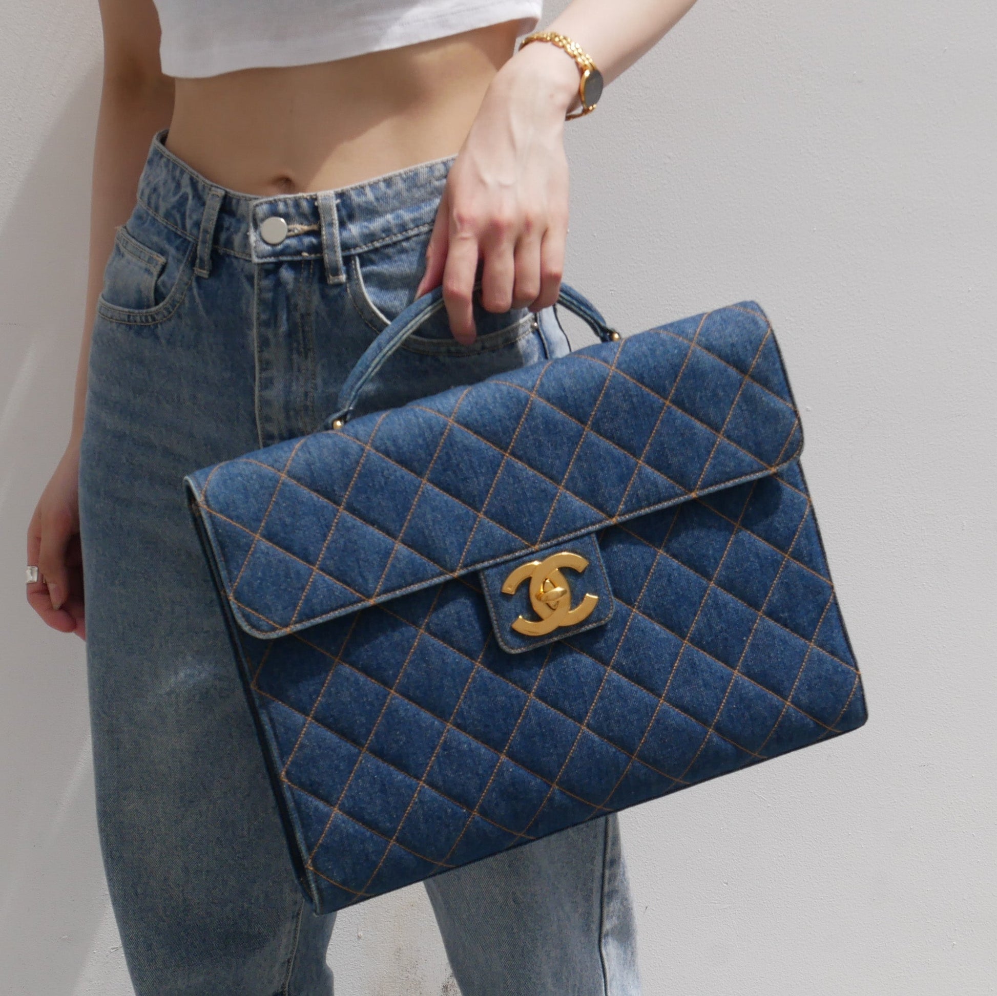 CHANEL Quilted Briefcase Business Hand Bag Denim