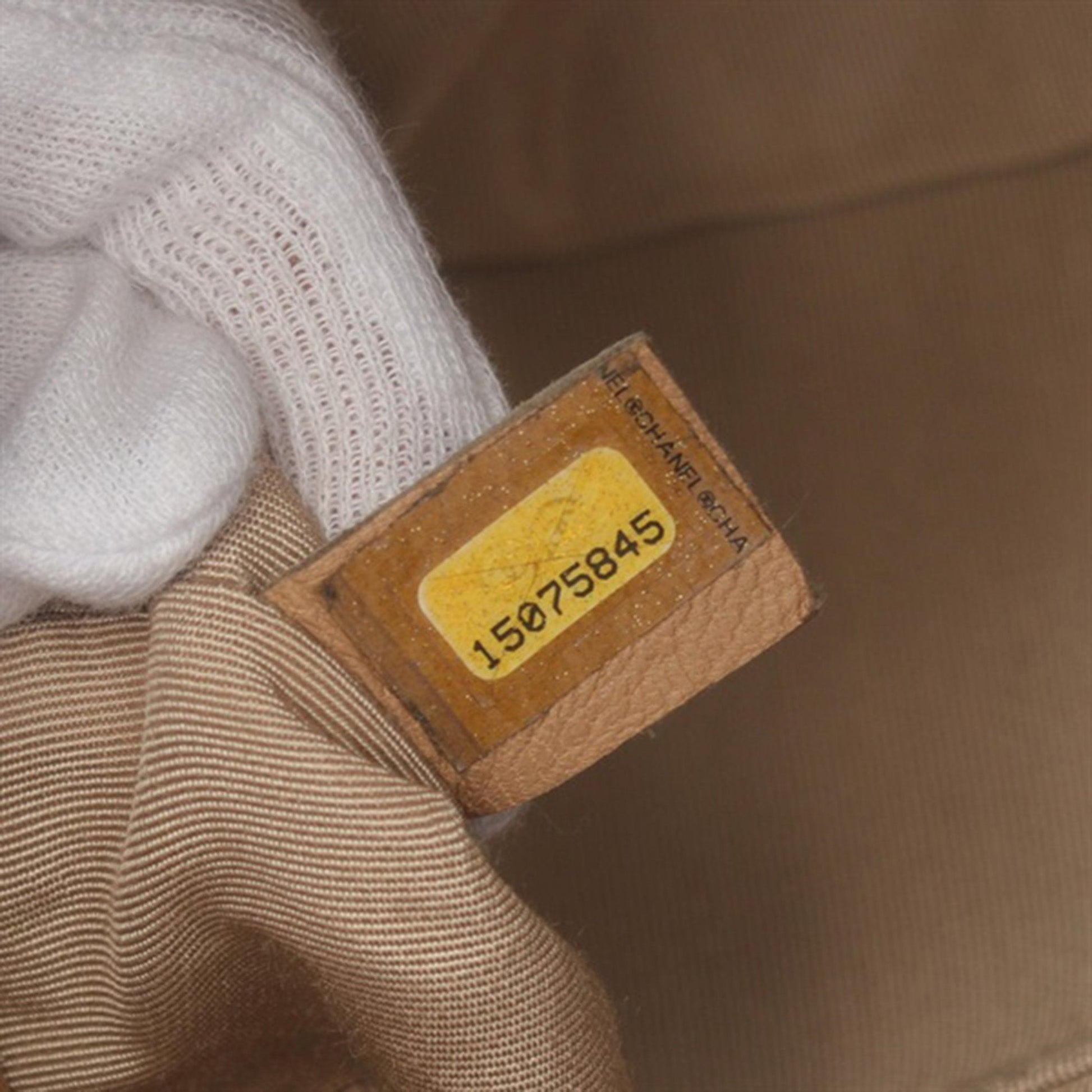 Product Details: Beige Chanel CC Caviar Wild Stitch Tote. This tote bag features a caviar leather body, leather woven chain straps, a top zip closure, and interior zip and slip pockets. 9.8" L x 14.2" W x 3.9" D. Serial number 15075845.