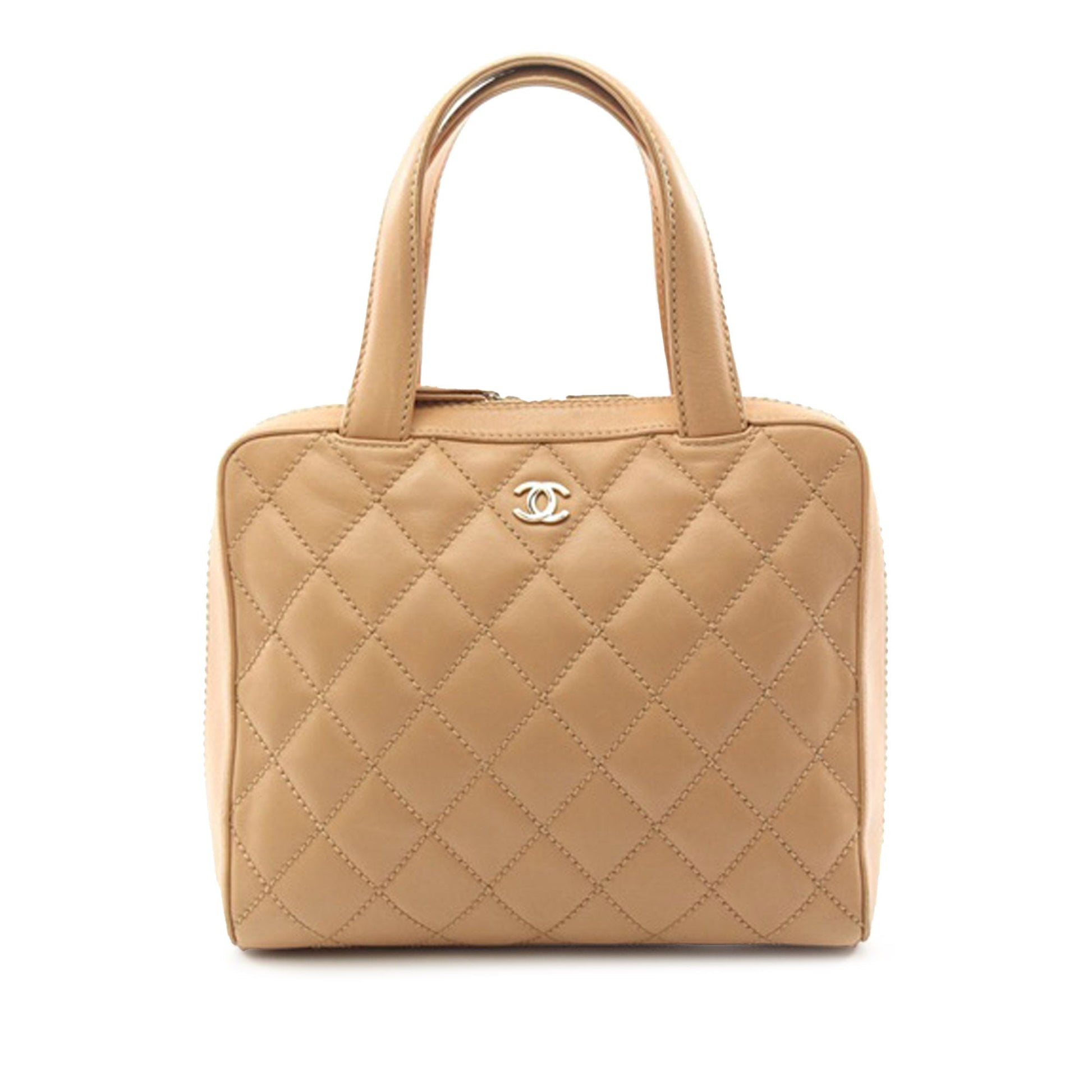 Product Details: Brown Chanel CC Wild Stitch Handbag. This handbag features a wild stitch quilted leather body, exterior back open pocket, flat handles, gold-tone hardware, a zip around closure, and an interior zip and slip pocket. 9.8" L x 12.2" W x 5.5" D, 6.7" drop. Serial number 7760490.