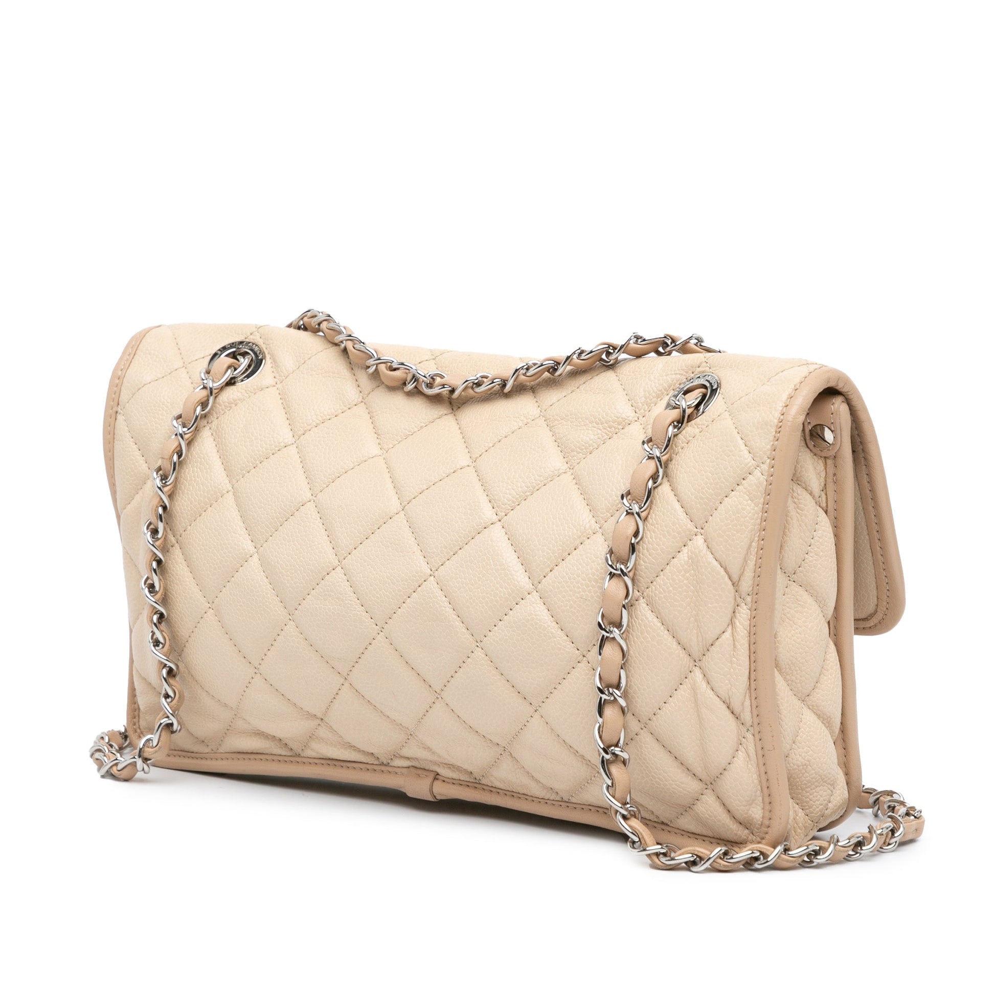 Beige Chanel Medium Caviar French Riviera Flap Shoulder Bag