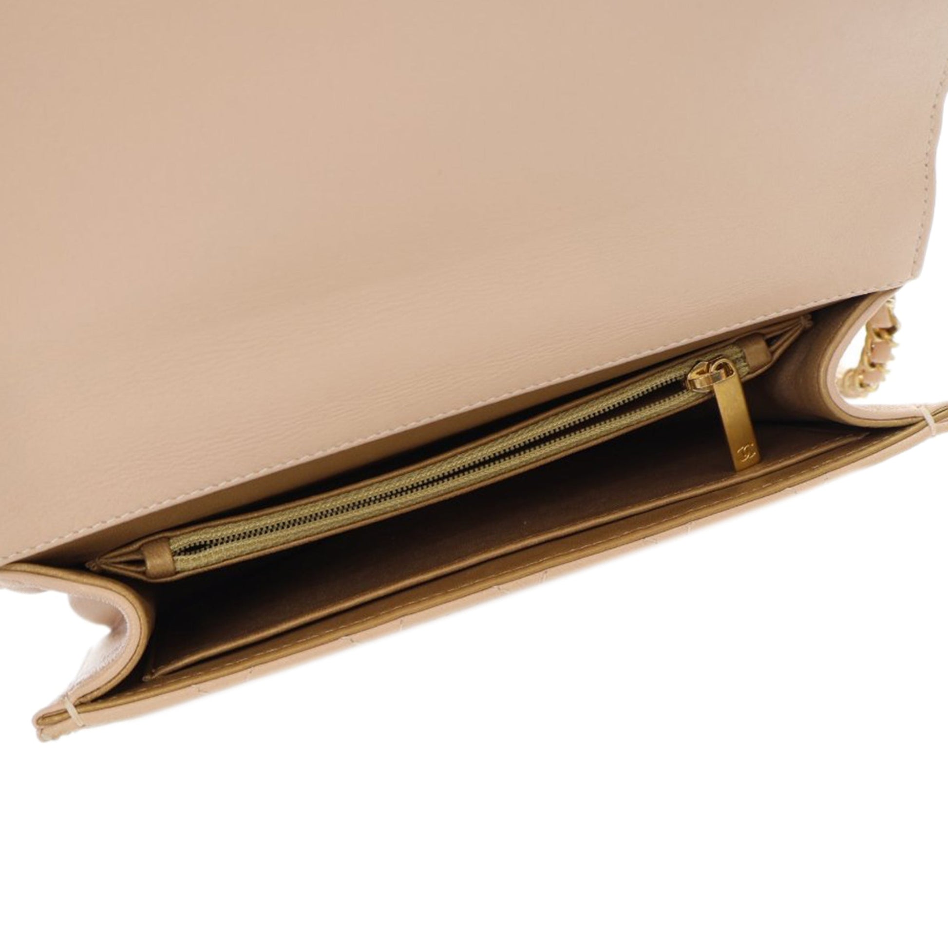 Beige Chanel Medium Quilted Goatskin Chic Pearls Flap Crossbody Bag