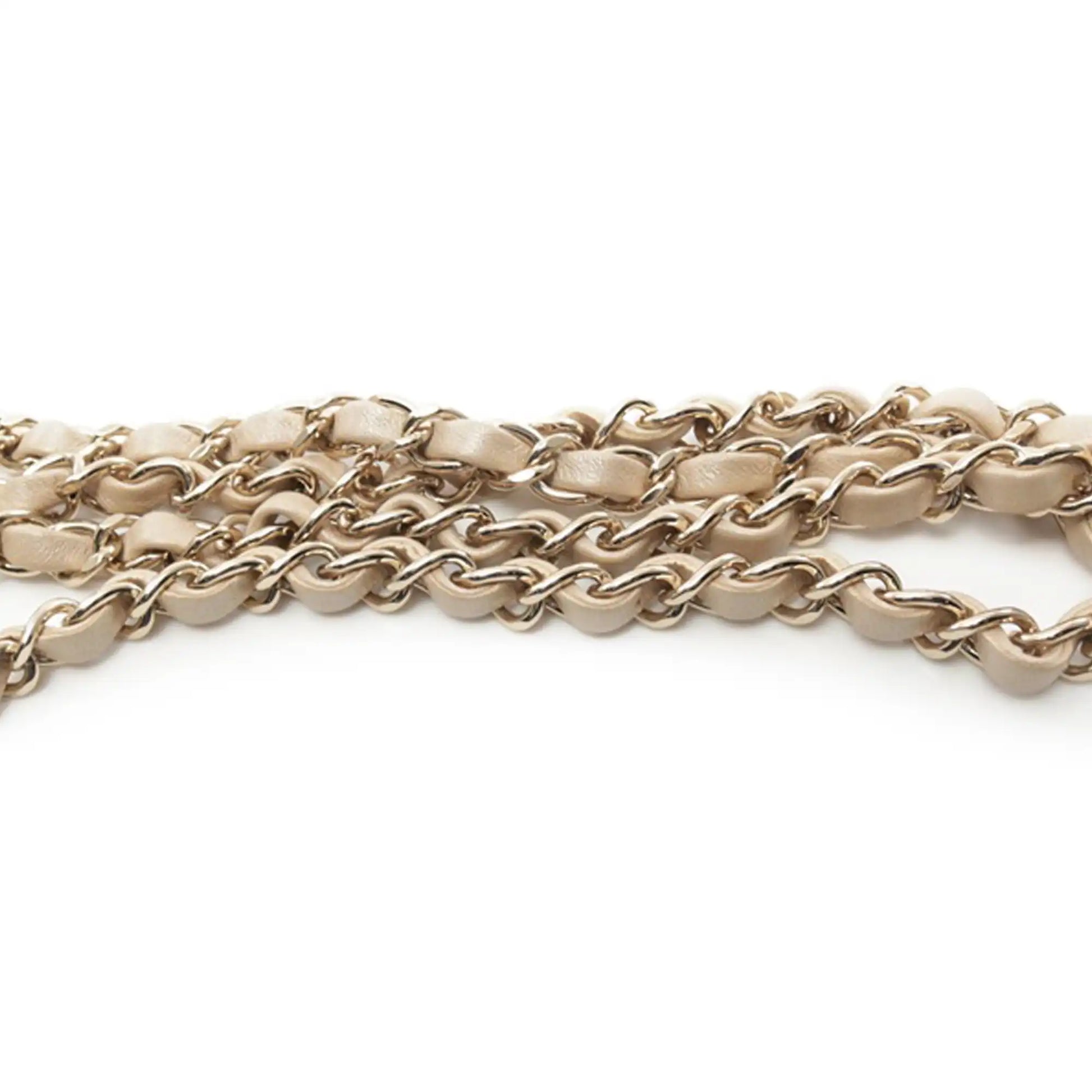 Product Details: Beige Chanel Mini Rectangular Classic Tweed Single Flap Crossbody Bag. This crossbody bag features a tweed body, a leather woven chain link shoulder strap, a front flap with interlocking Cs and twist lock closure, an exterior back slip pocket, and interior zip and slip pockets. 4.7" L x 7.9" W x 2.6" D. Serial number G62XXU3A.