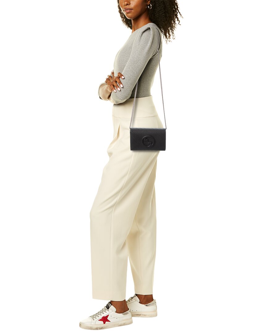 • Blondie Leather Wallet On Chain In Black Leather And Light Fine Gold Hardware With Logo Accent And Chain Strap