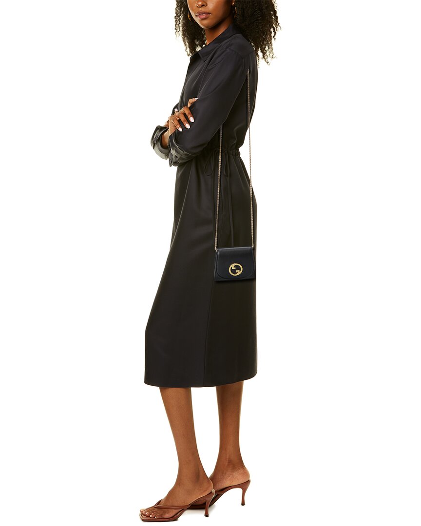 • Blondie Medium Leather Wallet On Chain In Black Leather And Light Fine Gold Hardware With Interlocking G Logo Accent